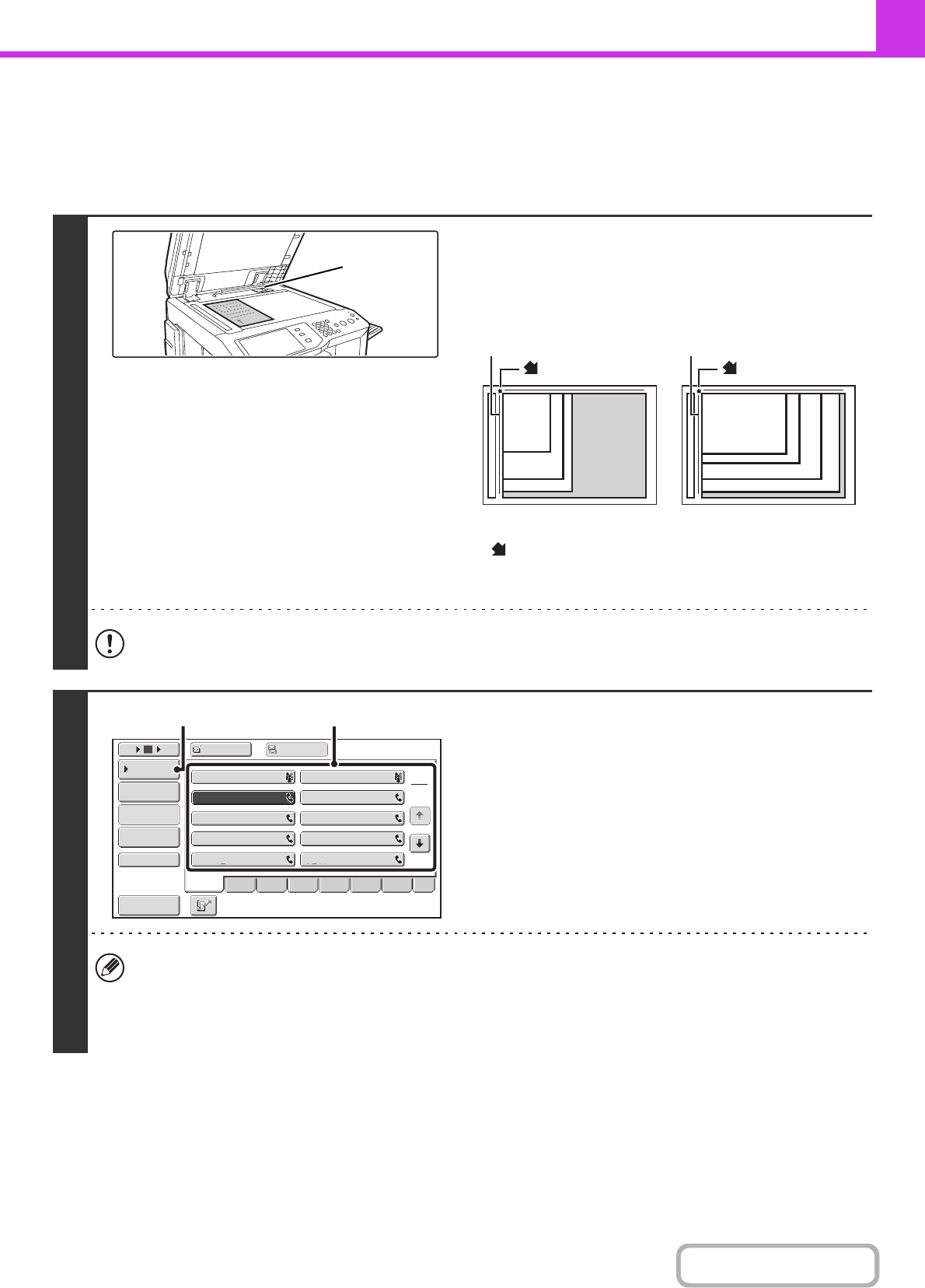 • In addition to specification by one-touch key, a destination can also be specified using a search number. You can