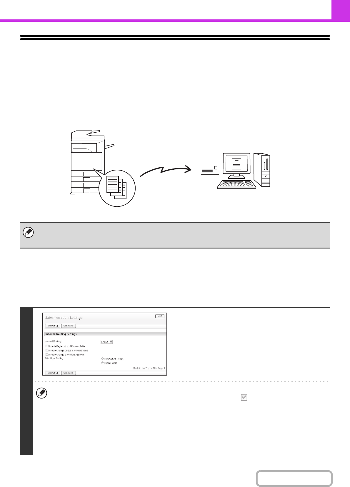 When inbound routing is enabled, you can also specify whether or not you wish the machine to print the forwarded