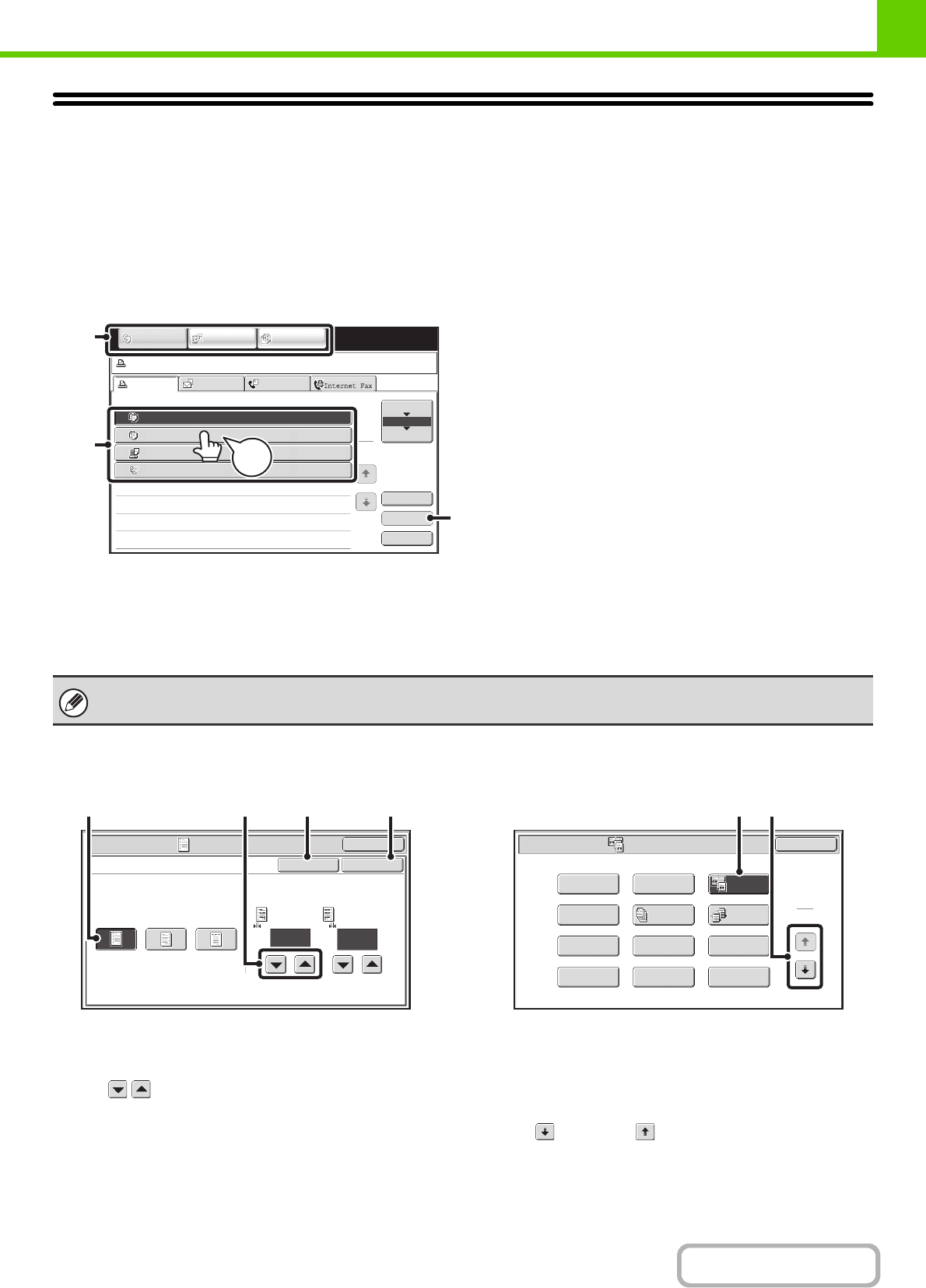 Use these keys to switch between copy, image send, and document filing modes.