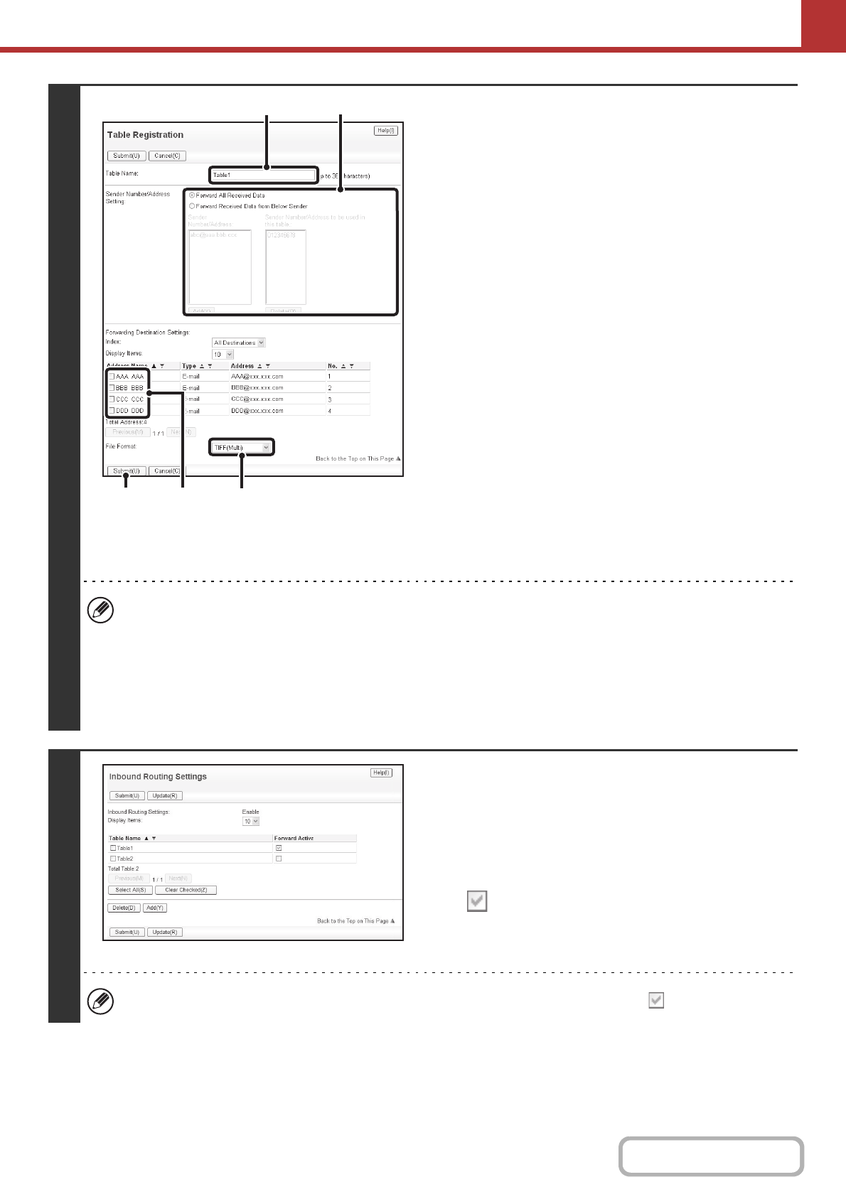 • If you wish to select a group of addresses for the forwarding destination, you can only select a group that contains