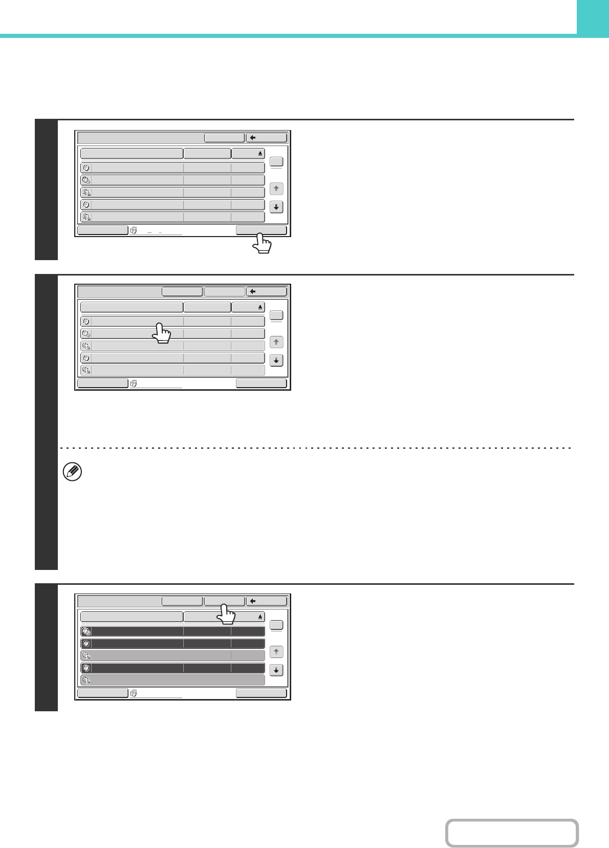 • When the [Select All] key is touched, it will change into the [Cancel All] key. To cancel the selection of all files that