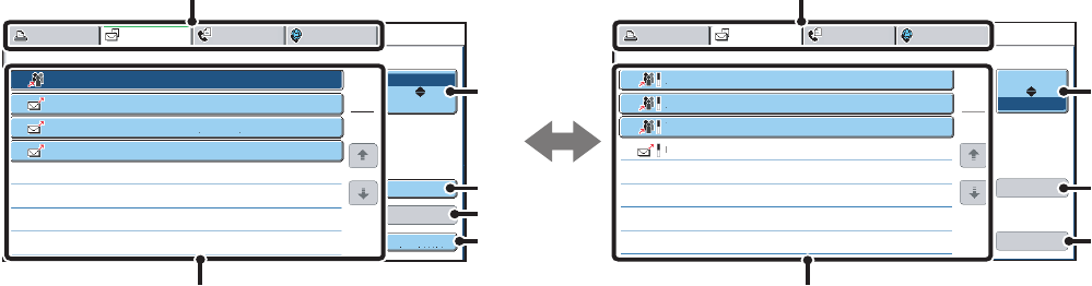 Use these tabs to change the job status screen mode.
