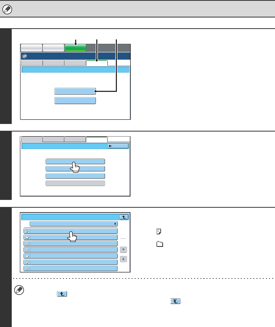 screen. Touch this key to return to the root folder (the top folder level of the selected FTP server).