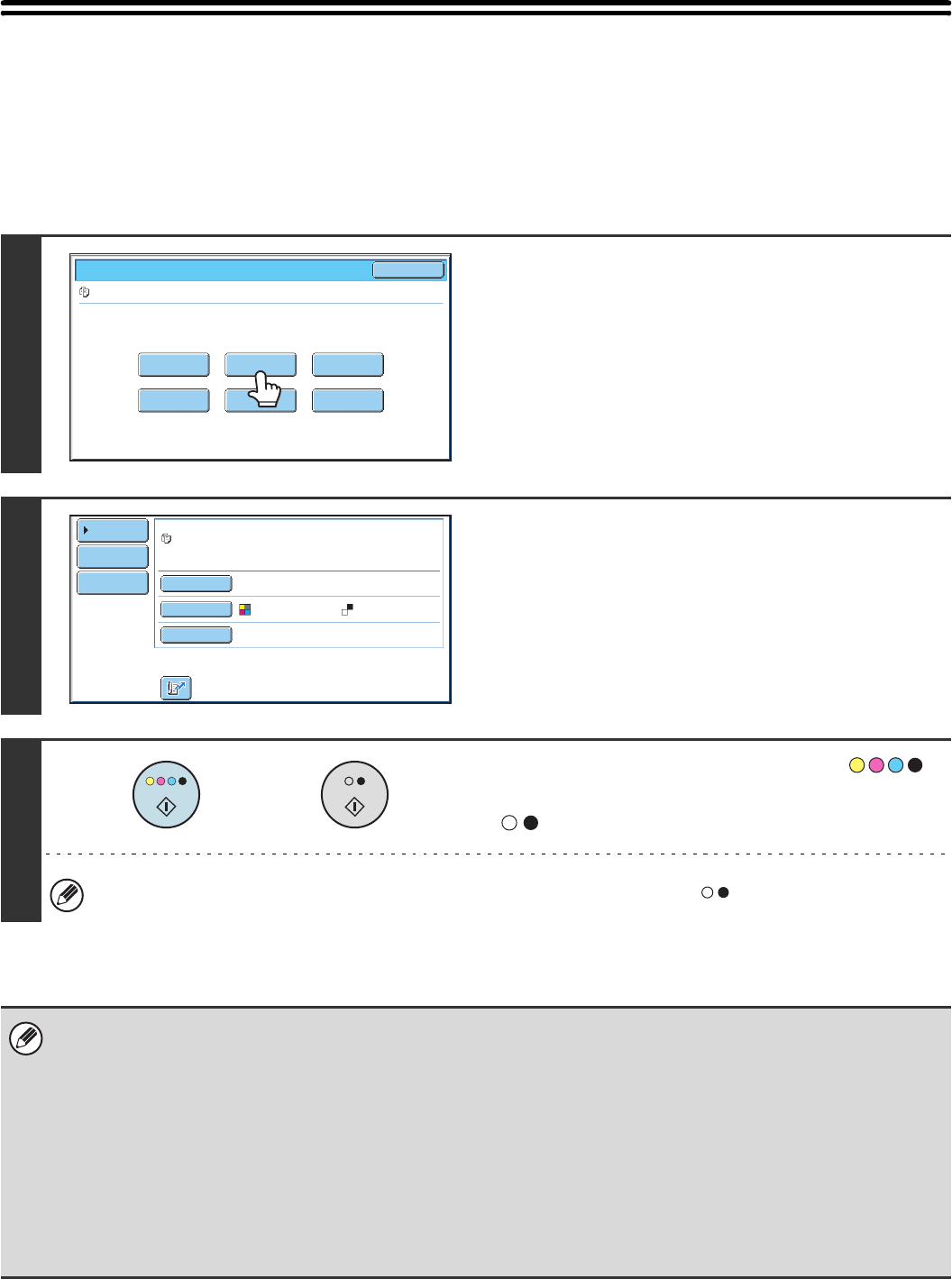 If you are sending a fax or an Internet fax, only the [BLACK & WHITE START] key ( ) can be used.