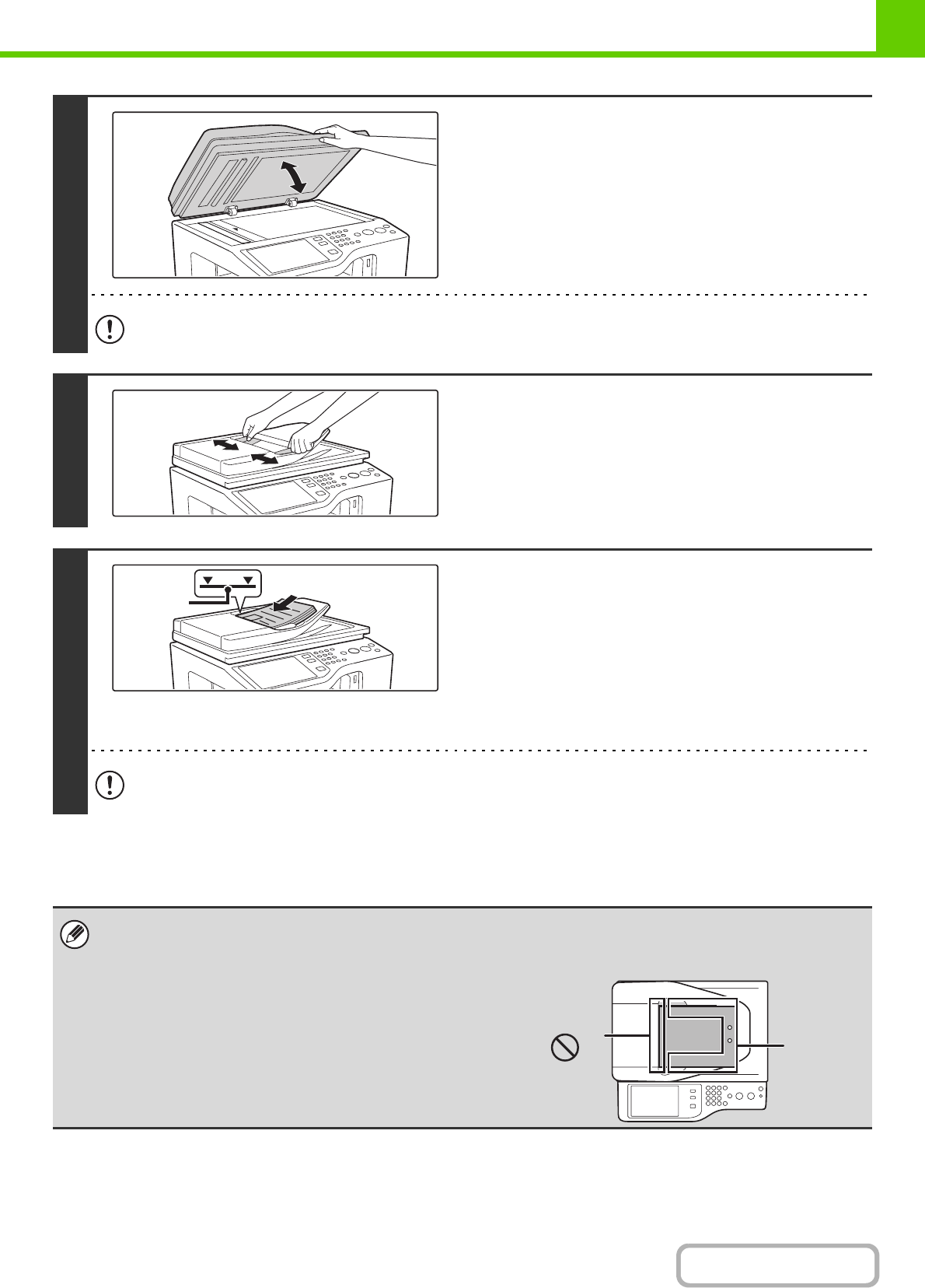 • Do not insert your hand into the document insertion opening in the automatic document feeder.