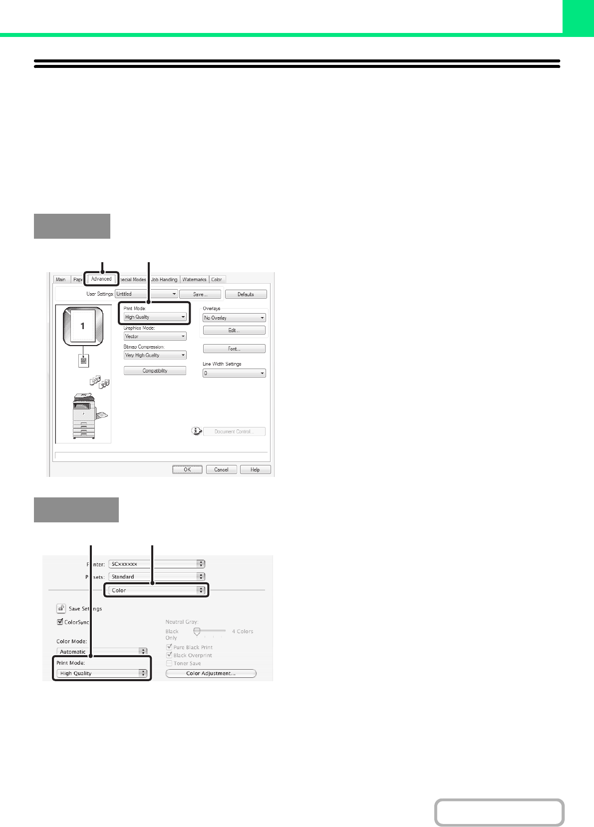 This section explains the procedure for selecting a print mode setting. The "Print Mode Settings" consist of the following