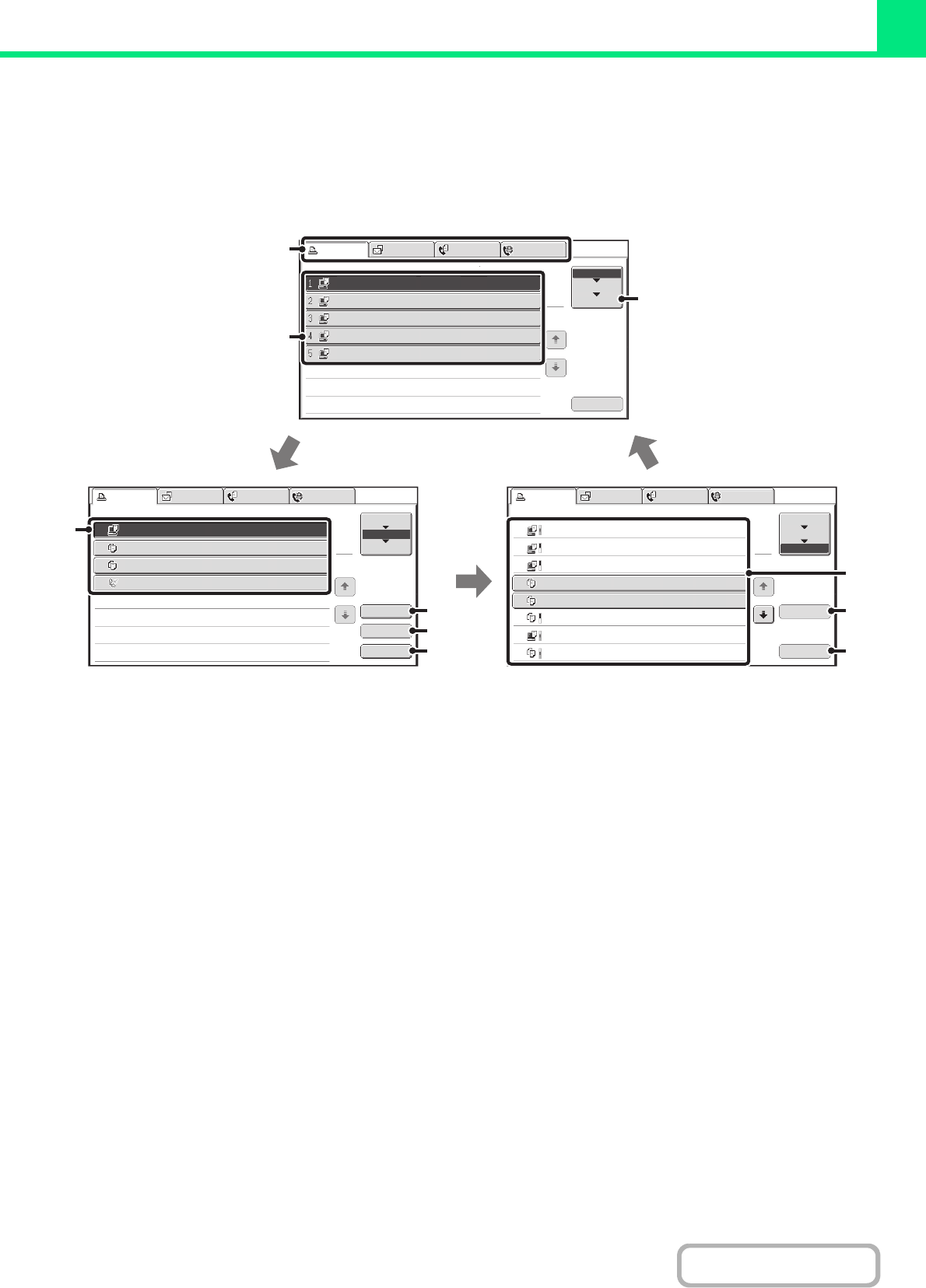 currently in progress, the completed job screen that shows jobs that have been completed, and the spool screen that