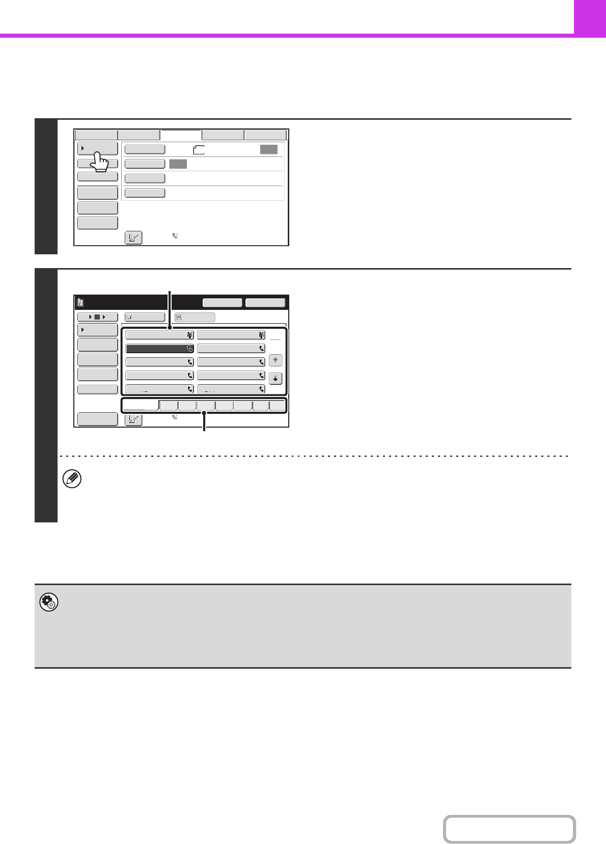 A destination fax number is retrieved by simply touching the one-touch key of that destination.