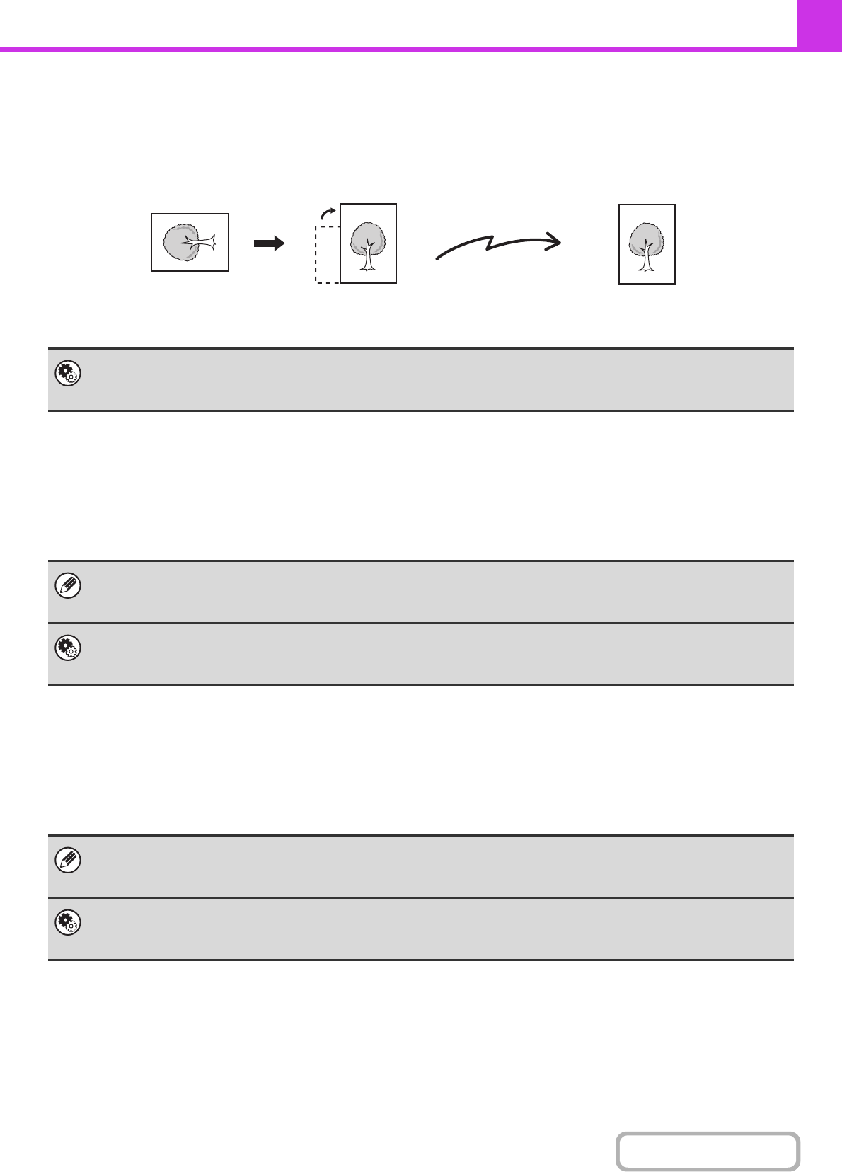 The factory default setting is rotate before transmission. If this setting is disabled, the original will be transmitted in the