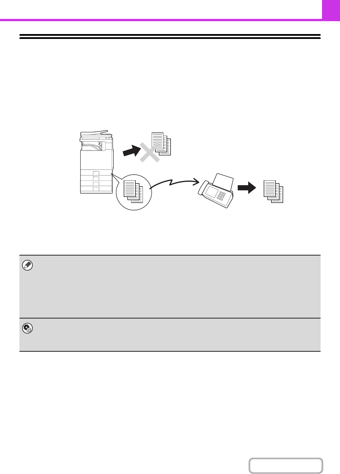• A forwarded fax becomes a fax transmission job. If transmission does not take place because the transmission was