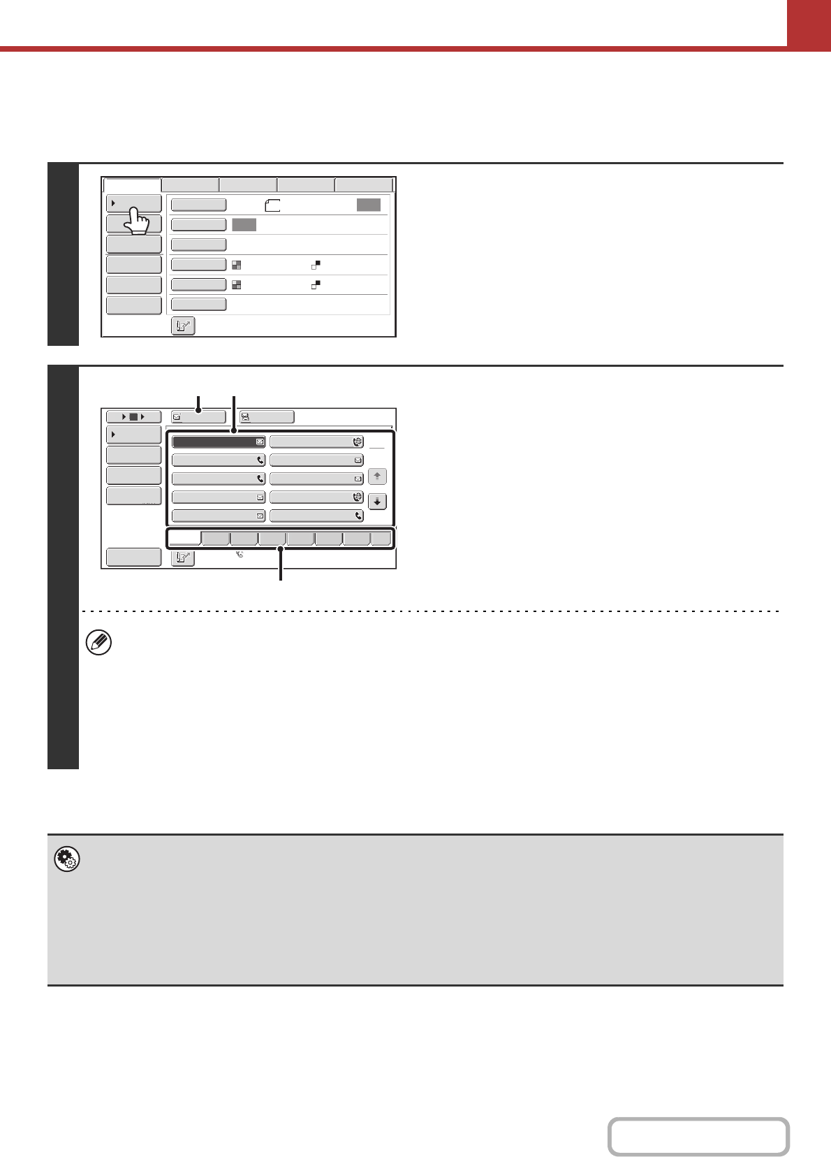 • It is convenient to store frequently used destinations in the [Freq.] index. Specify that a destination be displayed in