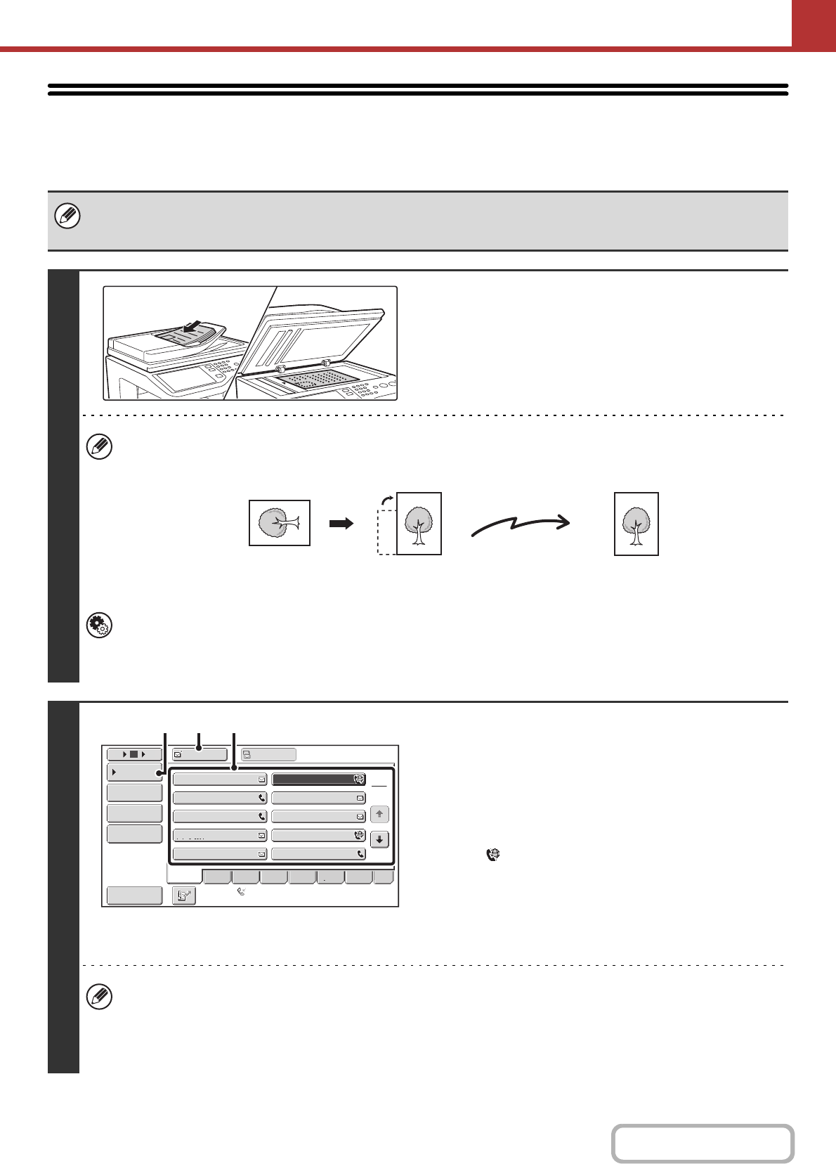 • In addition to specification by a one-touch key, a destination can also be specified by a search number. You can