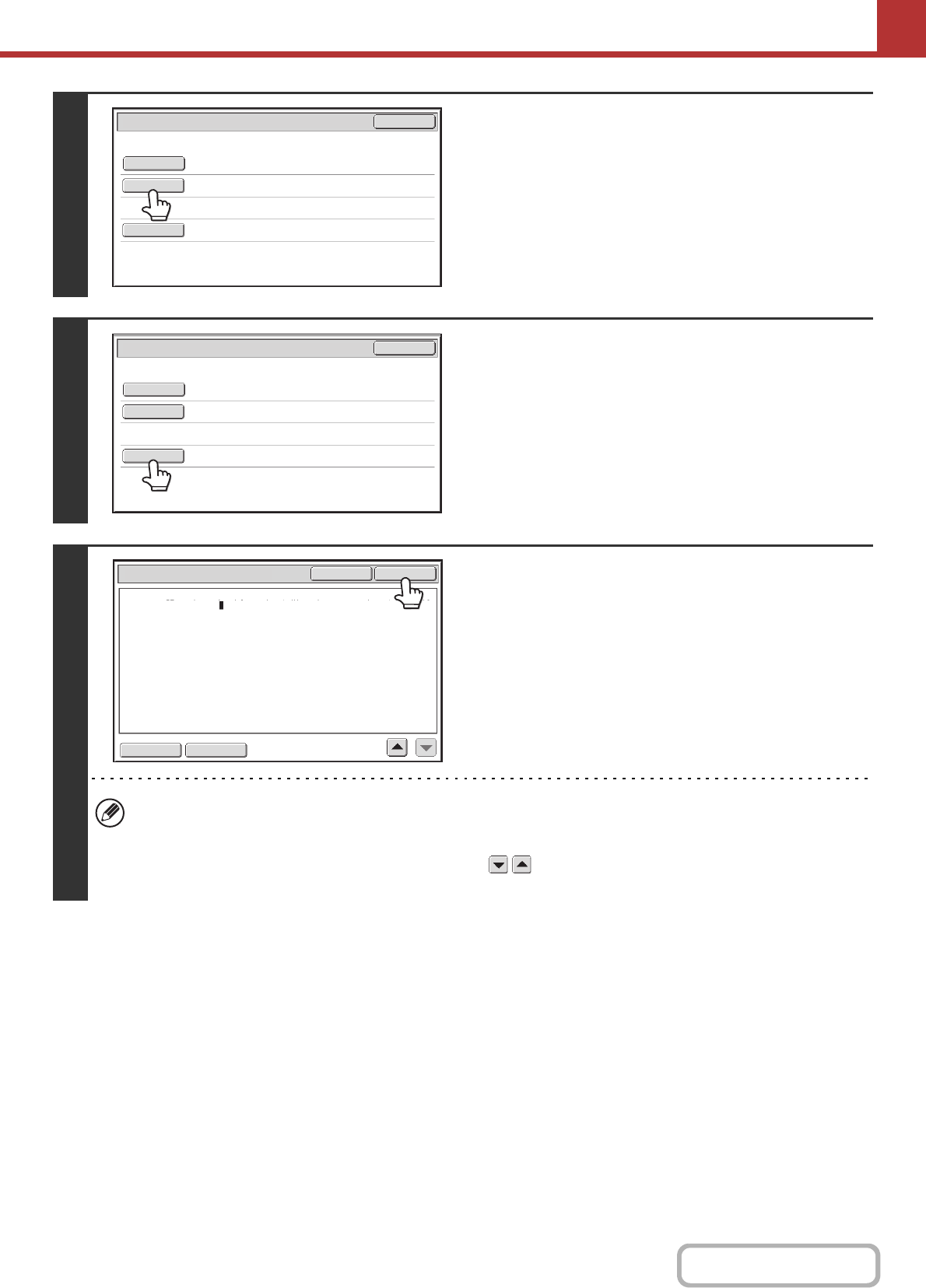 • Each line of the entered text can be selected with the keys. To edit the selected line, touch the [Edit] key.