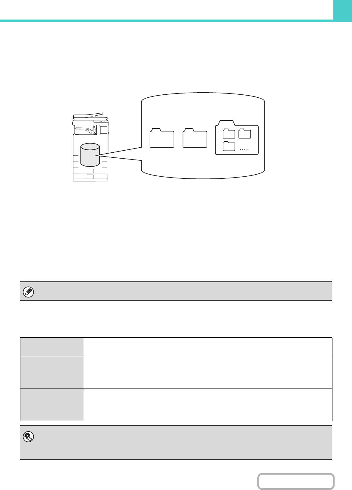 When a document is scanned using the [File] key and a folder is selected, the document is stored in the specified folder.