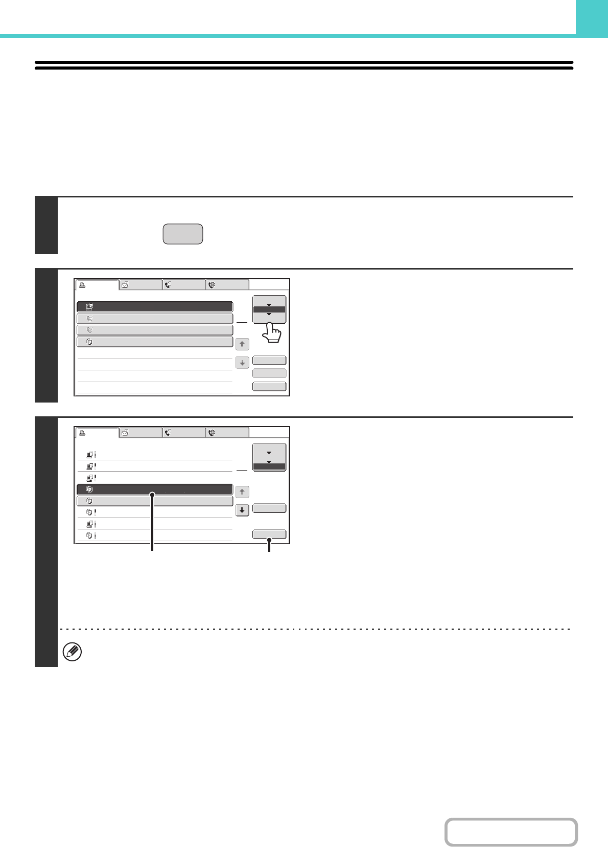 This is convenient when you need to quickly print the saved data of a copy job or quickly send a saved fax to another