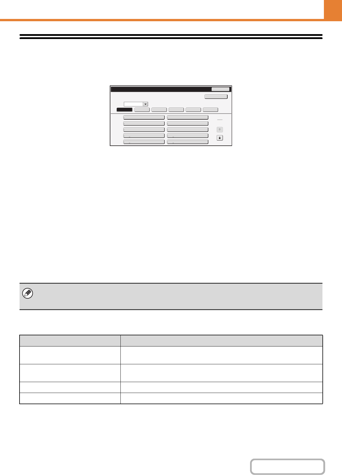 Document Filing Control is used to create, edit, and delete custom folders for document filing. Touch the [Document