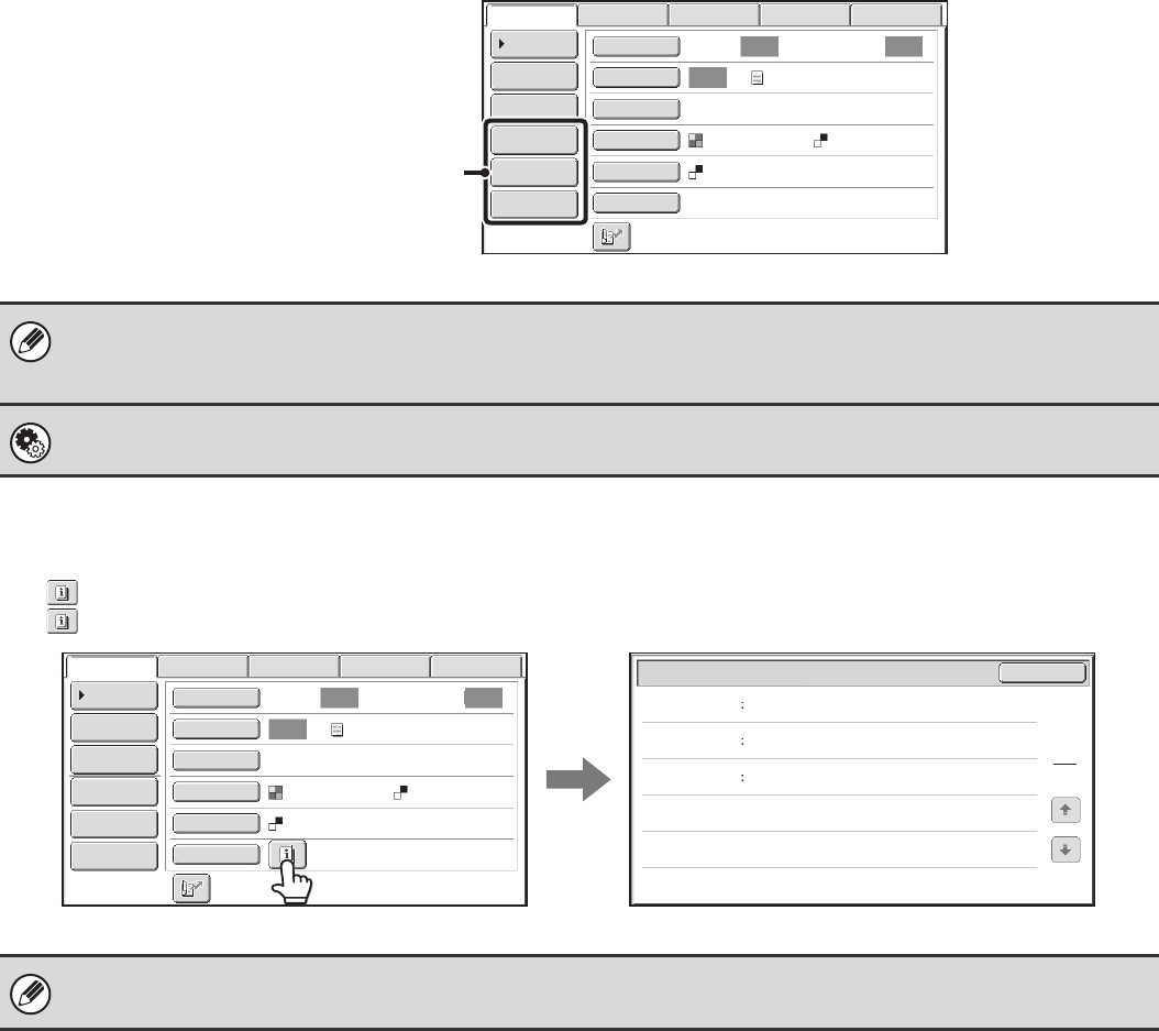 The key can be touched to display the selected special modes. To close the screen, touch the [OK] key.