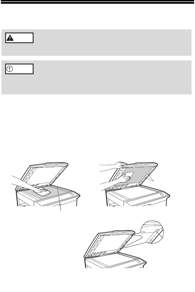 copied. Wipe the glass, RSPF scanning window, cover and RSPF roller with a soft,