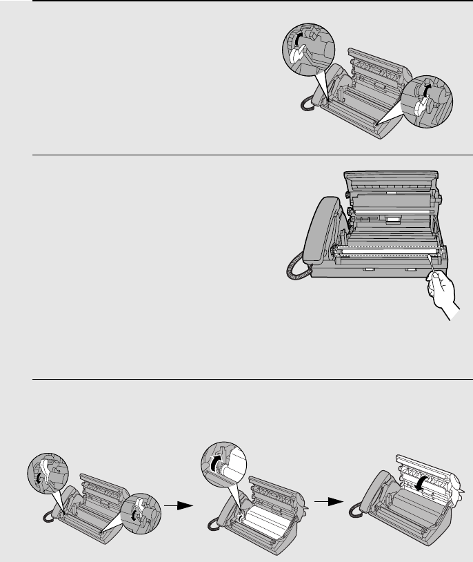 4 Flip down the green levers on each side of the white roller. Rotate the