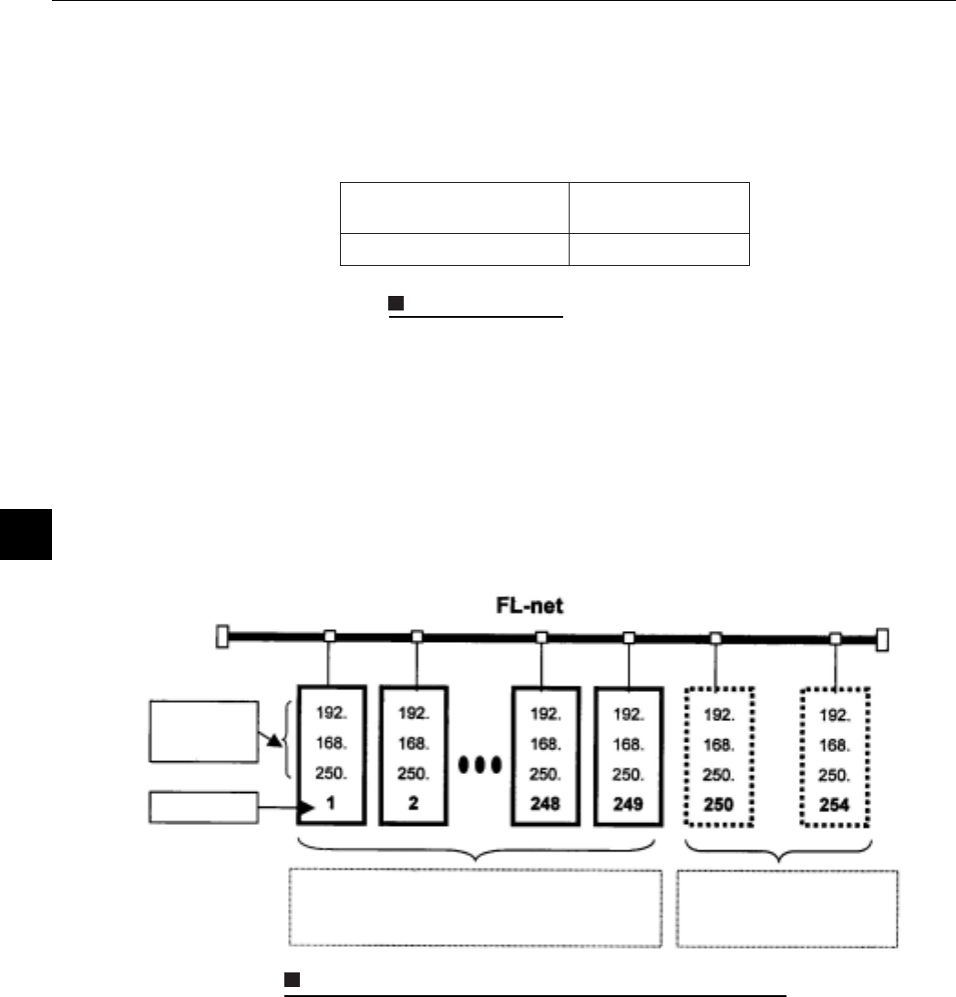 The default value of an FL-net IP address is "192.168.250.***", where "***" is the node number.