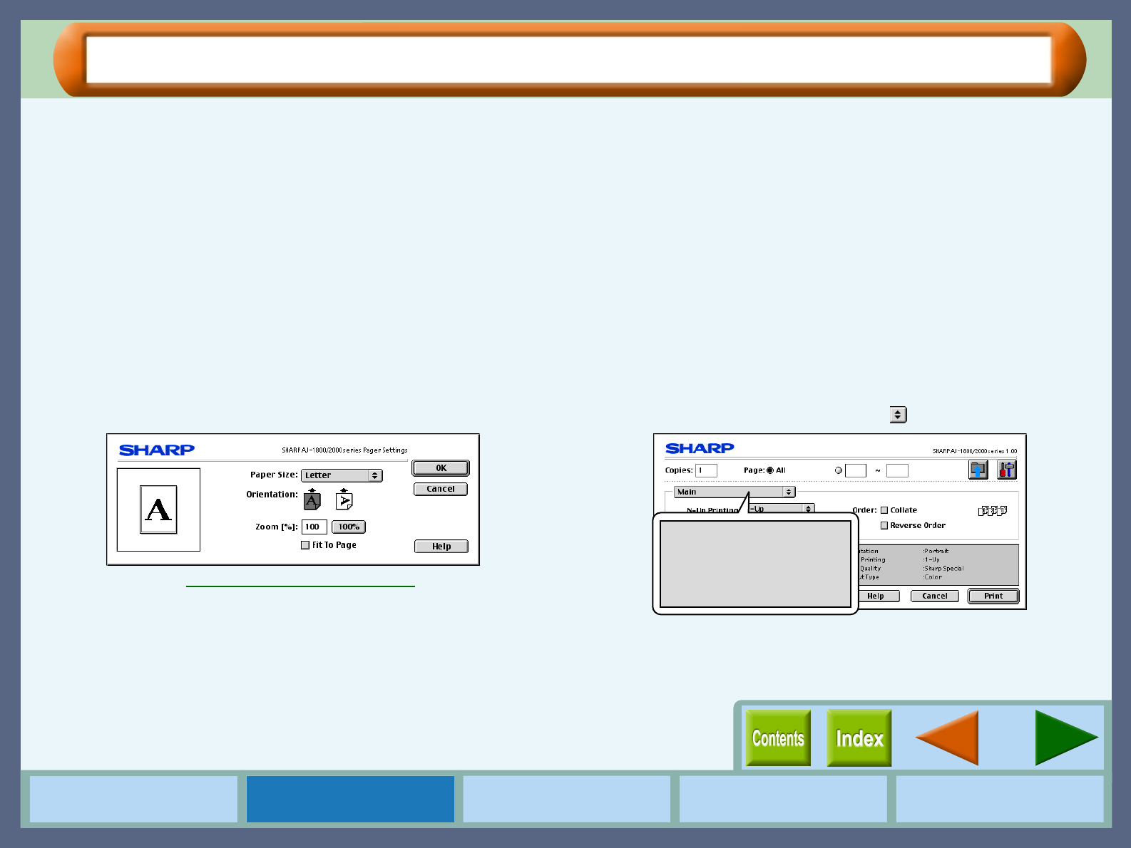 dialog box, you can specify values related to paper including paper size. Open the dialogs by following the steps shown