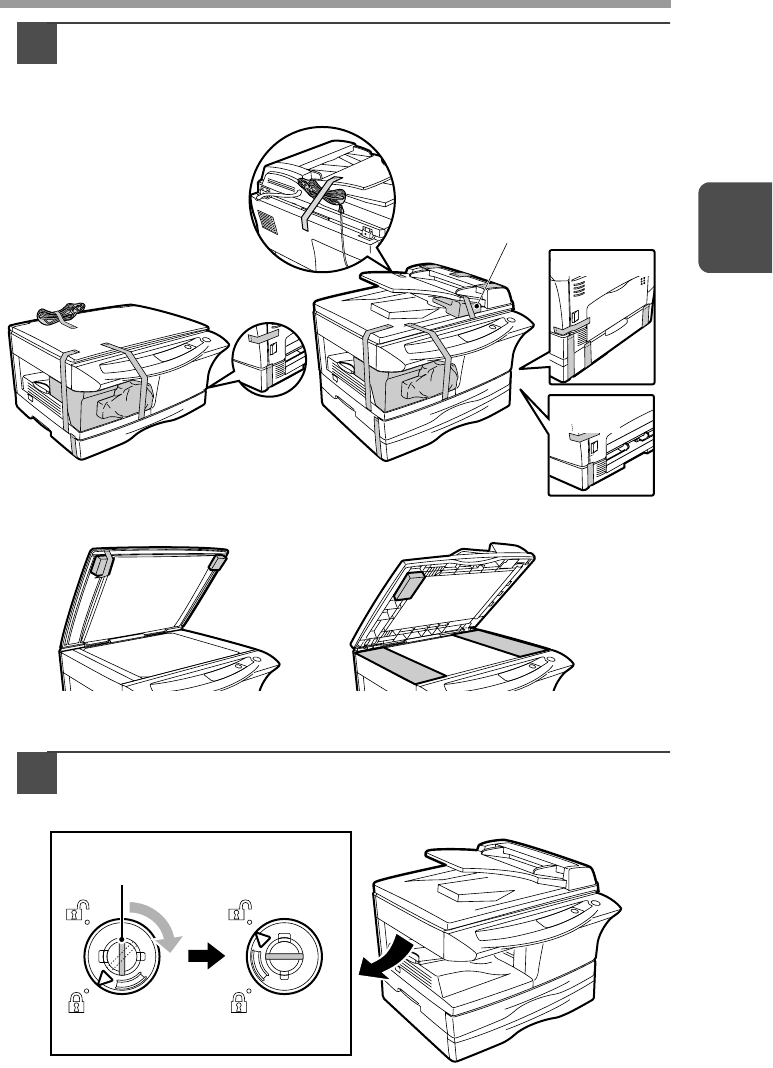 Remove all pieces of tape shown in the illustration below. Then