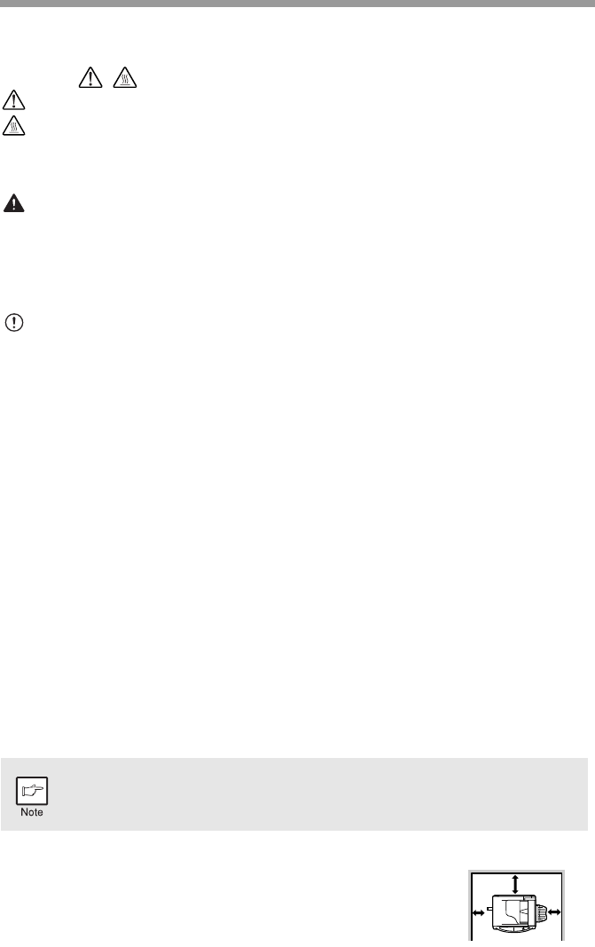 • Do not cover the unit with a dust cover, cloth or plastic film while the power is on.