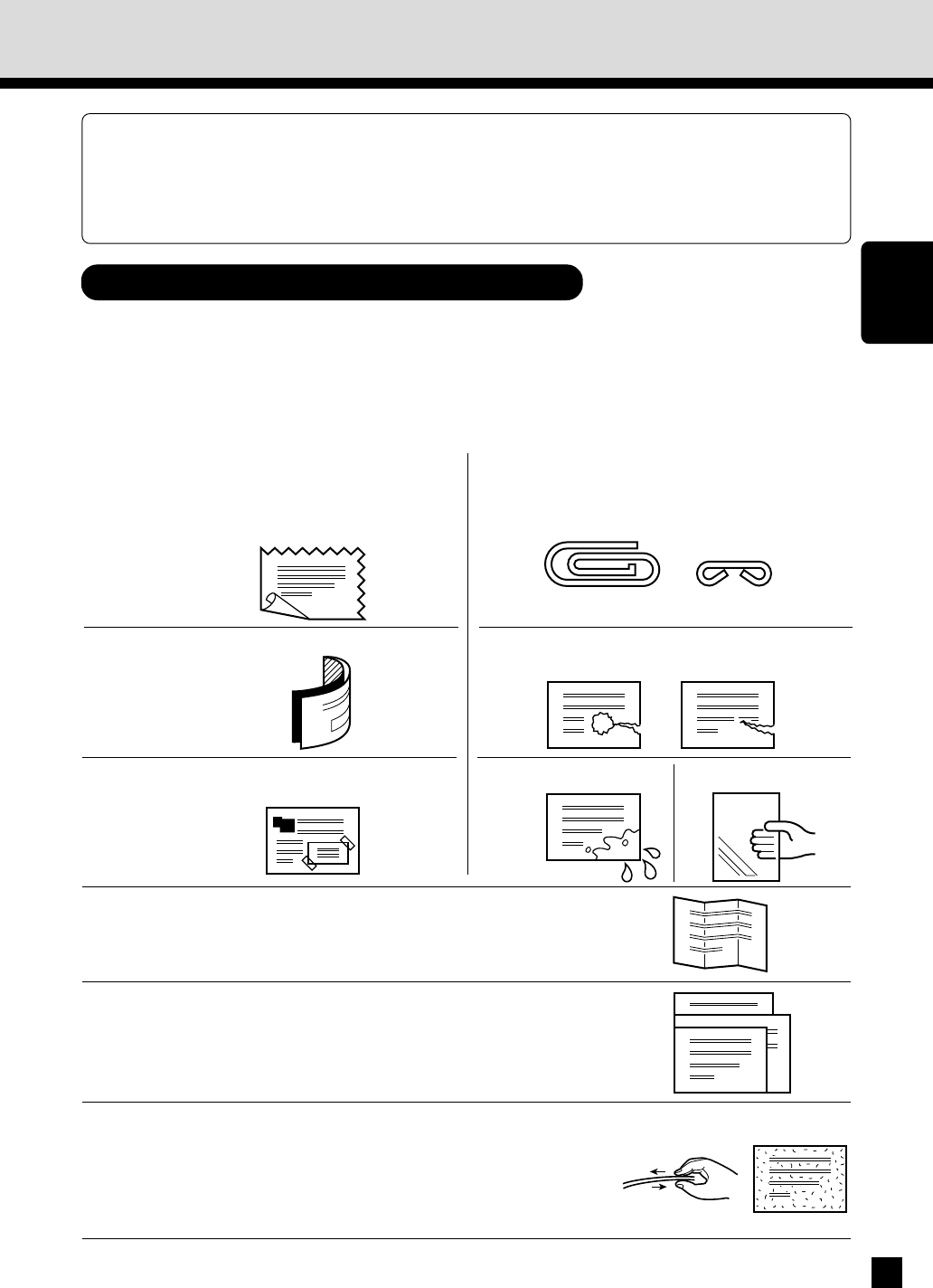 Do not use the following types of originals as they tend to misfeed or become damaged