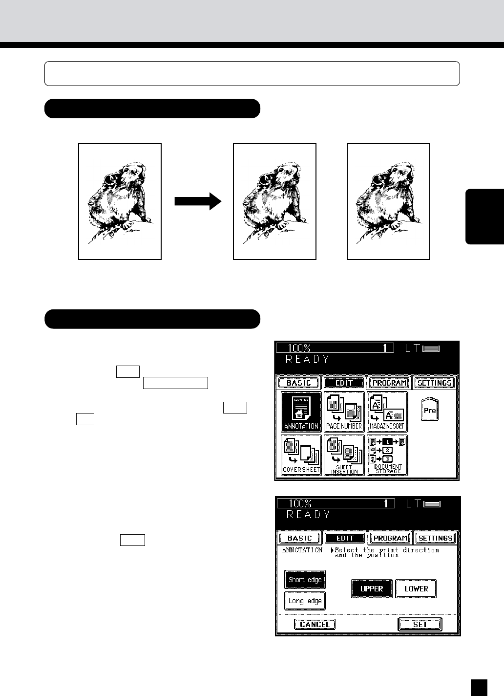This function allows you to print the date and time at either the top or bottom of the copy.