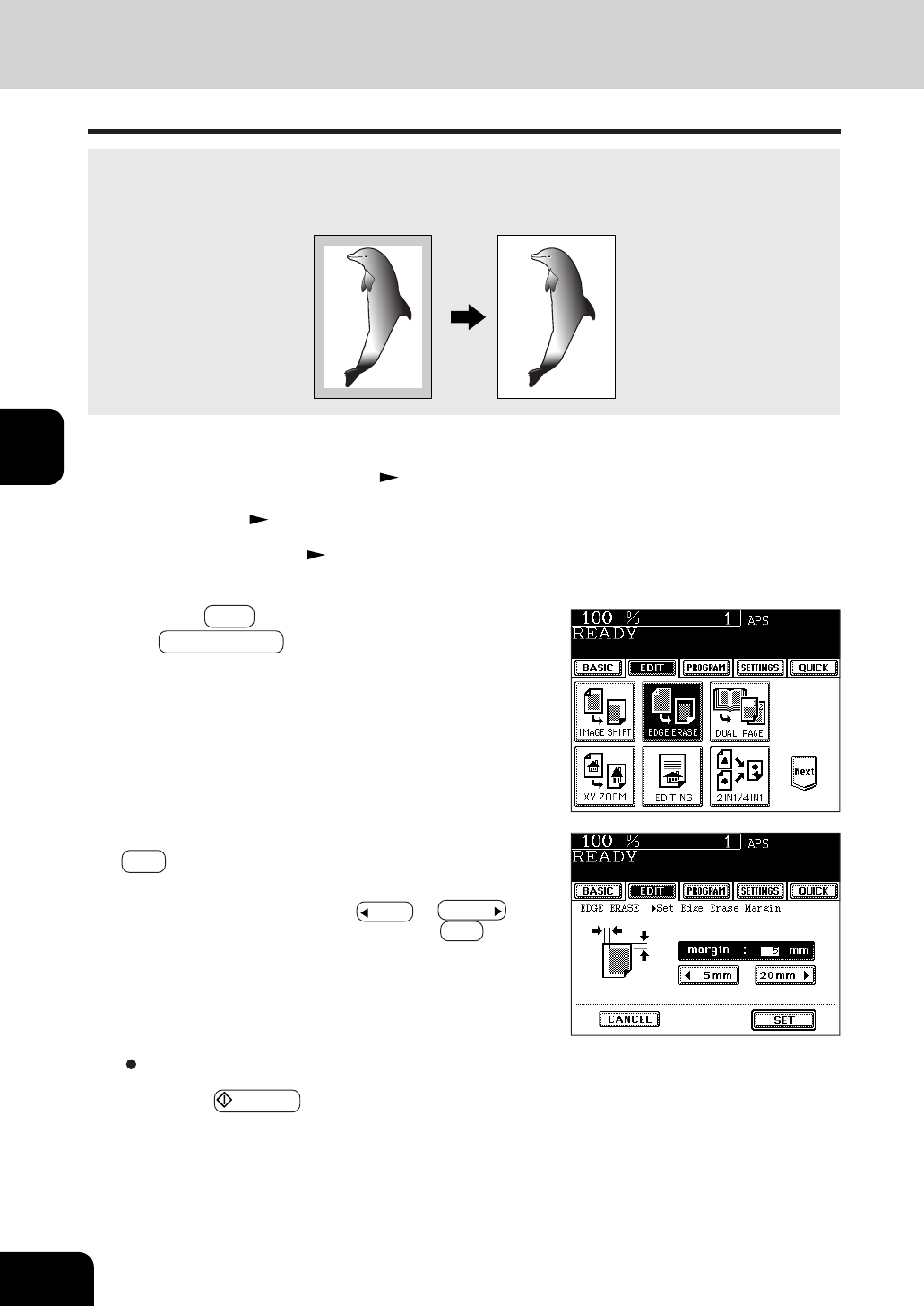 Edge Erase Copying. A white border is created along the edges of the copy, eliminating those black marks.