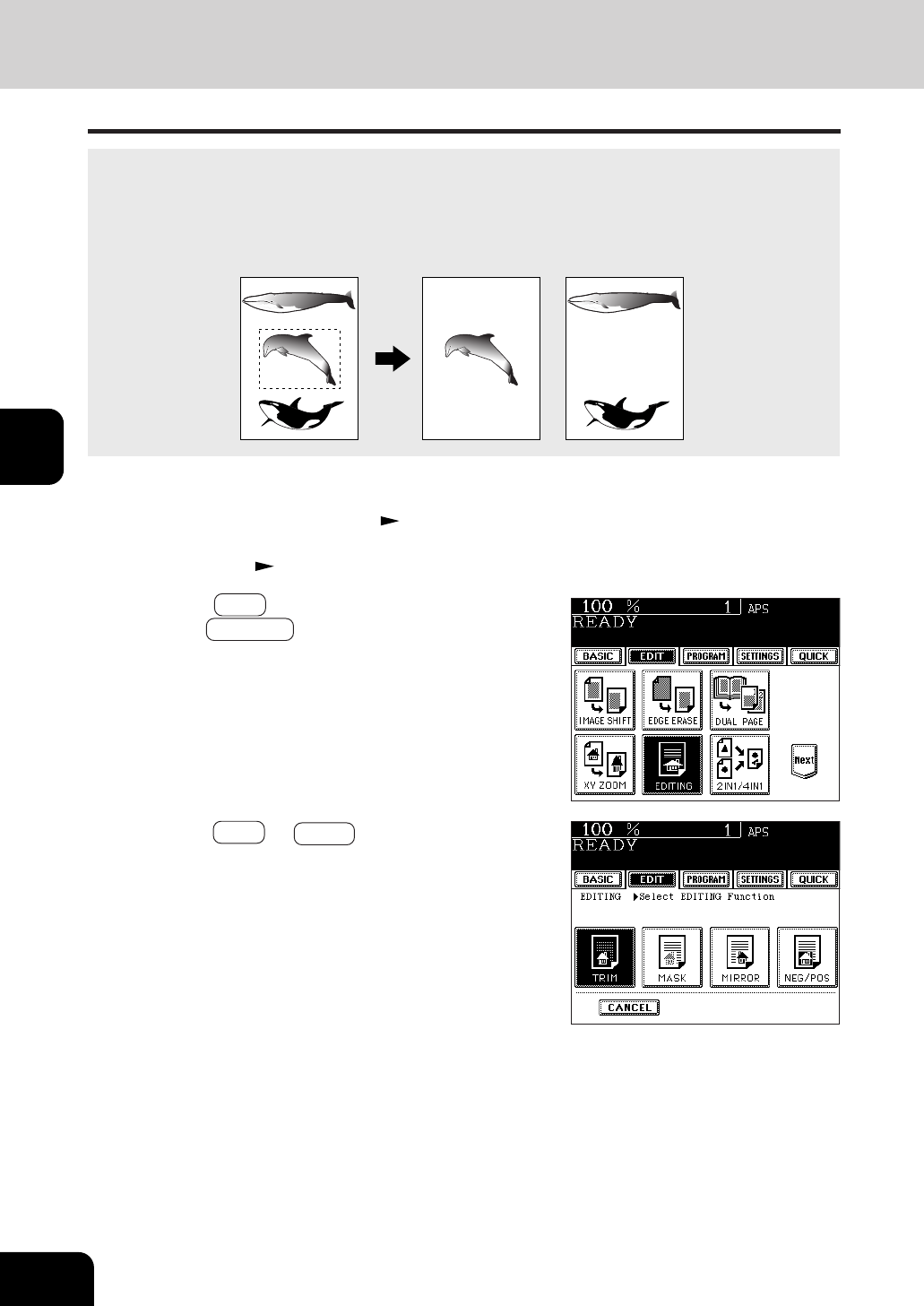 or masked (only the outside of the area copied). Four rectangular areas can be specified on an original.