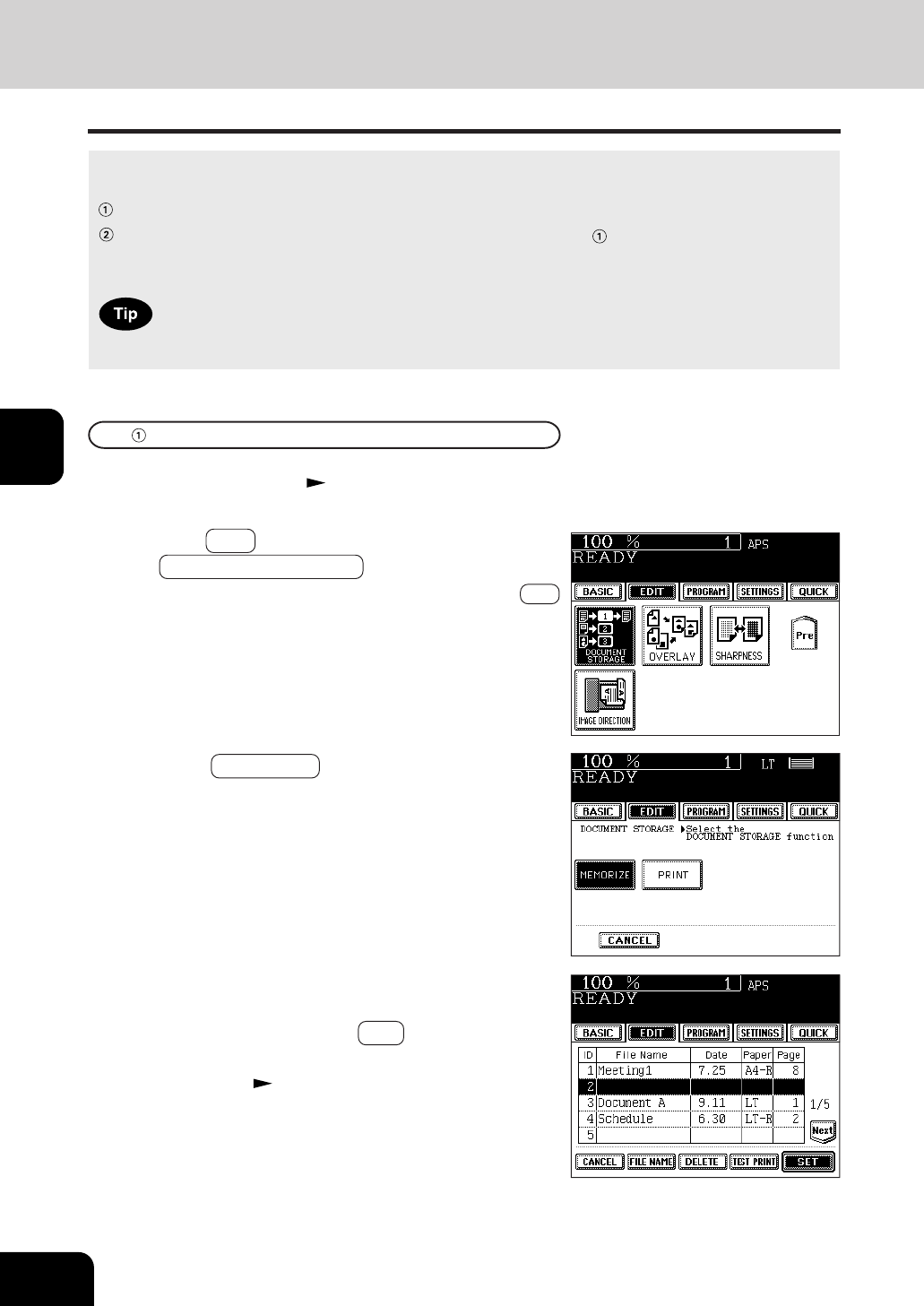 This feature allows images of the originals to be stored on the hard disk of the copier, and copies can be