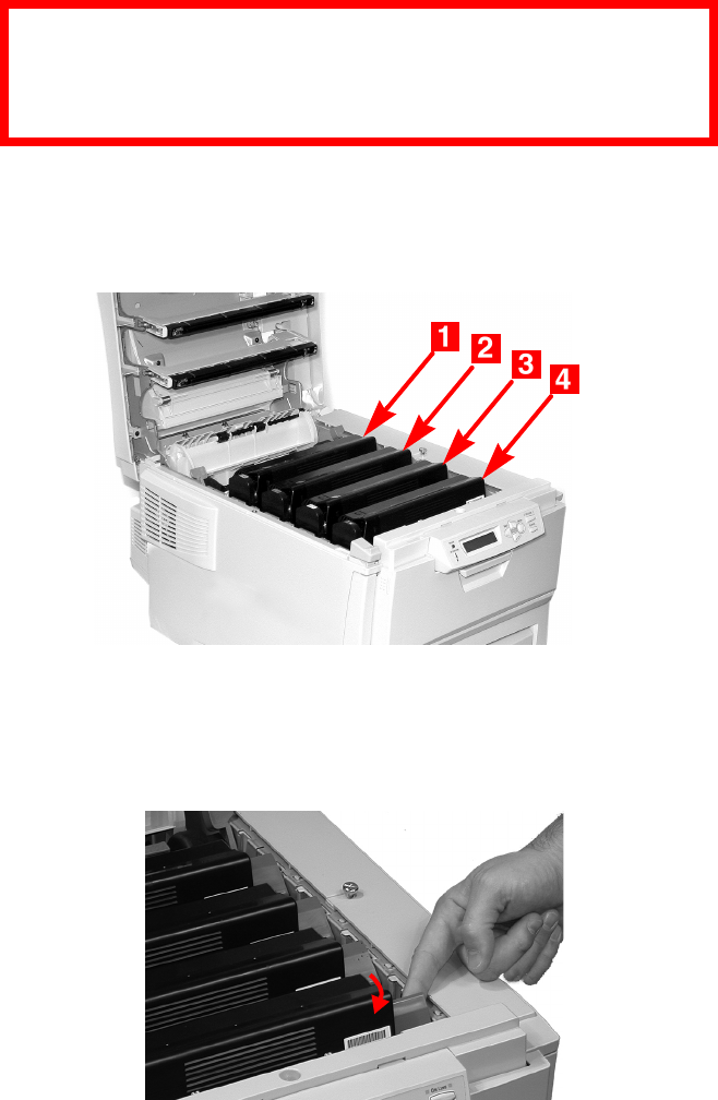 2. Note the positions of the four cartridges: Cyan (1),