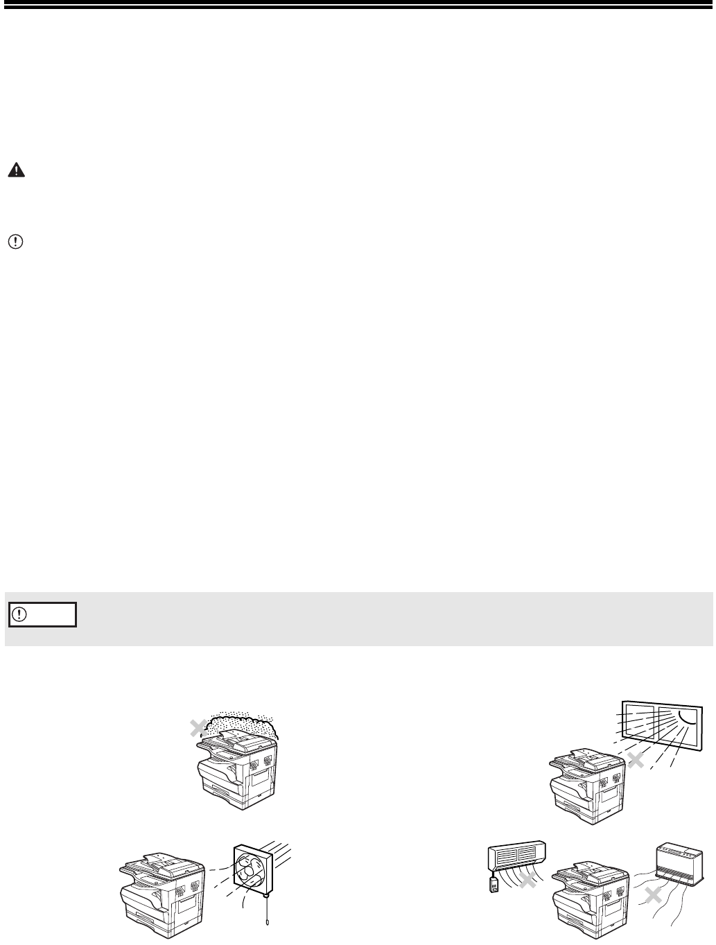 • Do not cover the machine with a dust cover, cloth or plastic film while the power is on. Doing so may prevent heat
