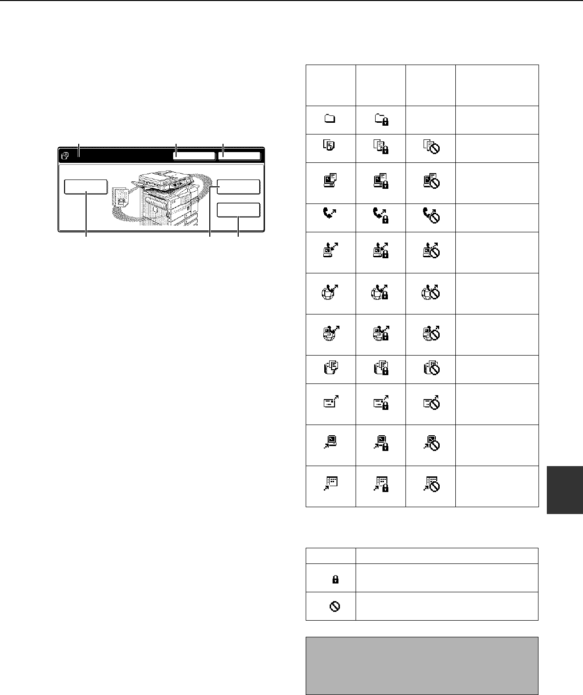 shows the copy mode screen, image send mode, or the