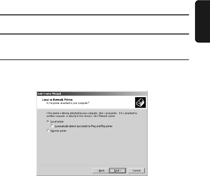 Select Local Printer. Make sure that “Automatically detect and install my