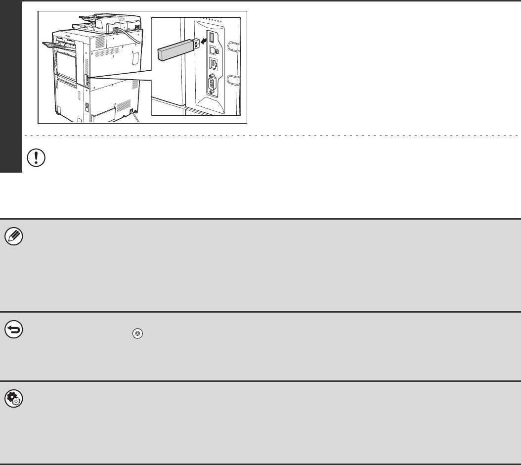 Do not disconnect the USB memory while "Processing data." or "Sending data." appears in the touch panel.