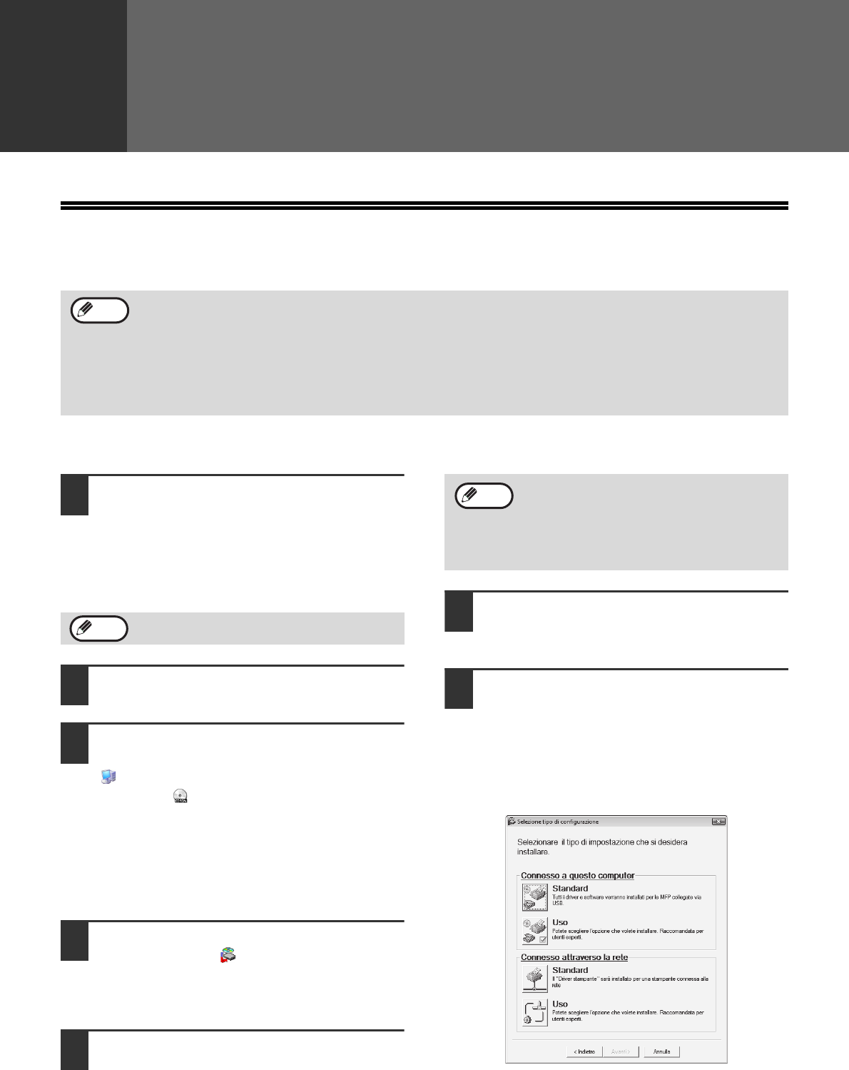 • Per usare un diverso metodo di connessione dopo aver installato il software con una connessione di rete o USB,