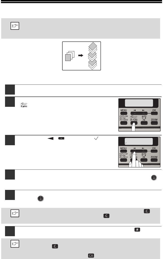 • Para cancelar el modo de copia con ordenación, pulse la tecla de