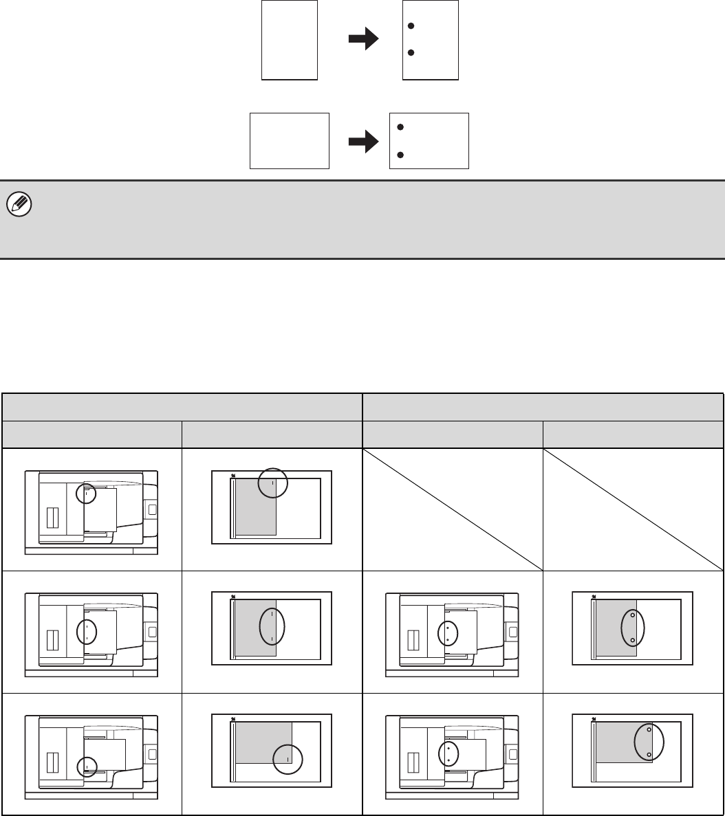 When using the staple sort function or the punch function, the original must be placed as shown below to enable stapling