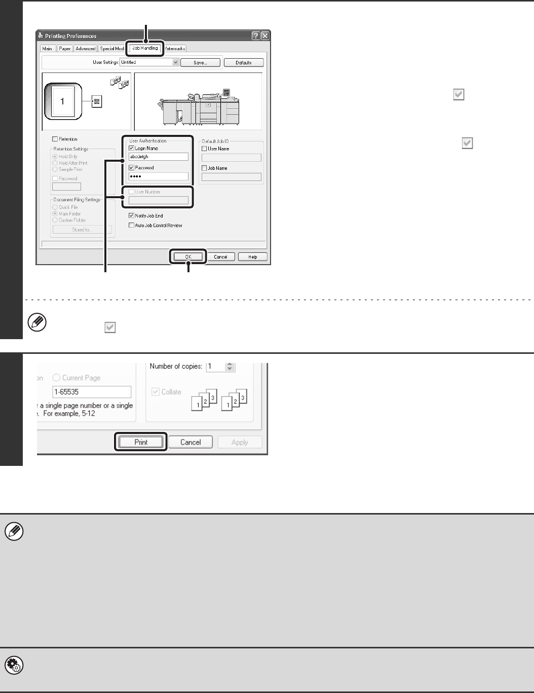• Normally printing is possible without entering your user information. (In this case, the printed pages will be added to the