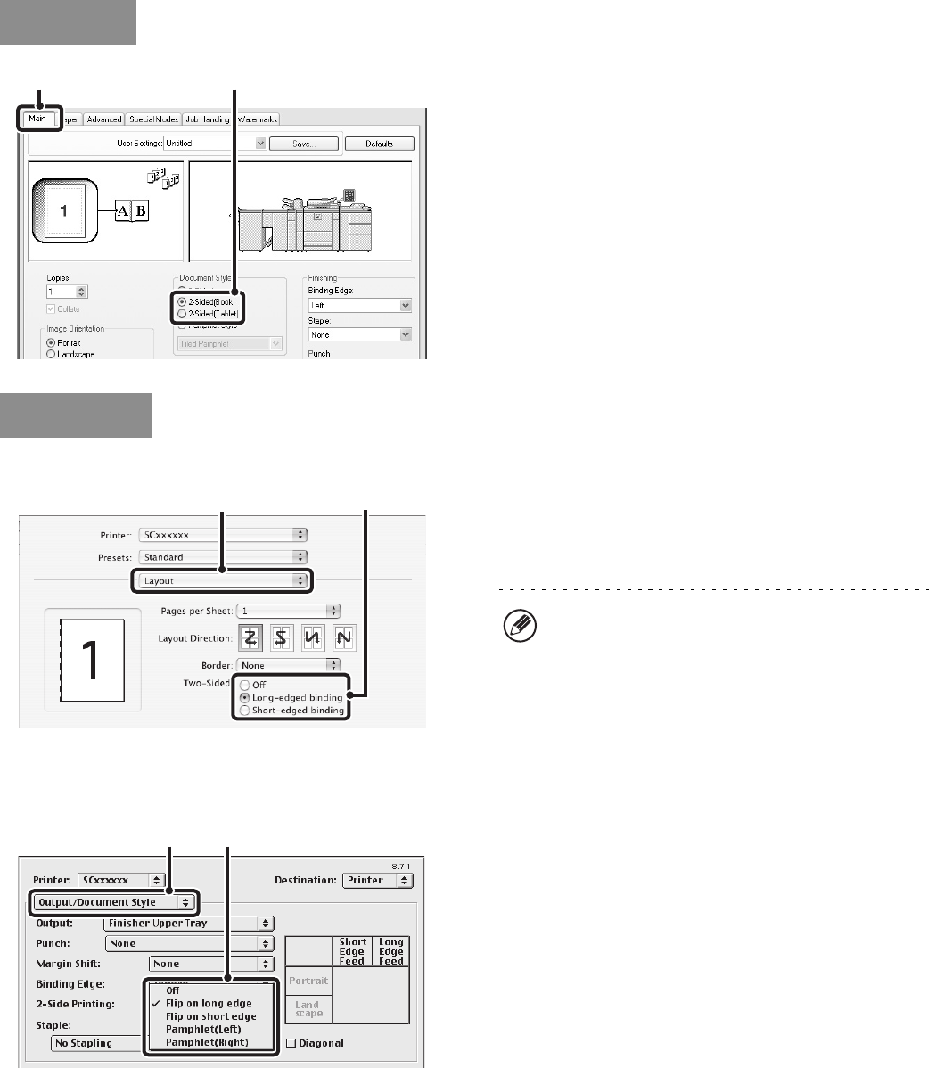 • In Mac OS X v10.1.5, select the settings in [Duplex].