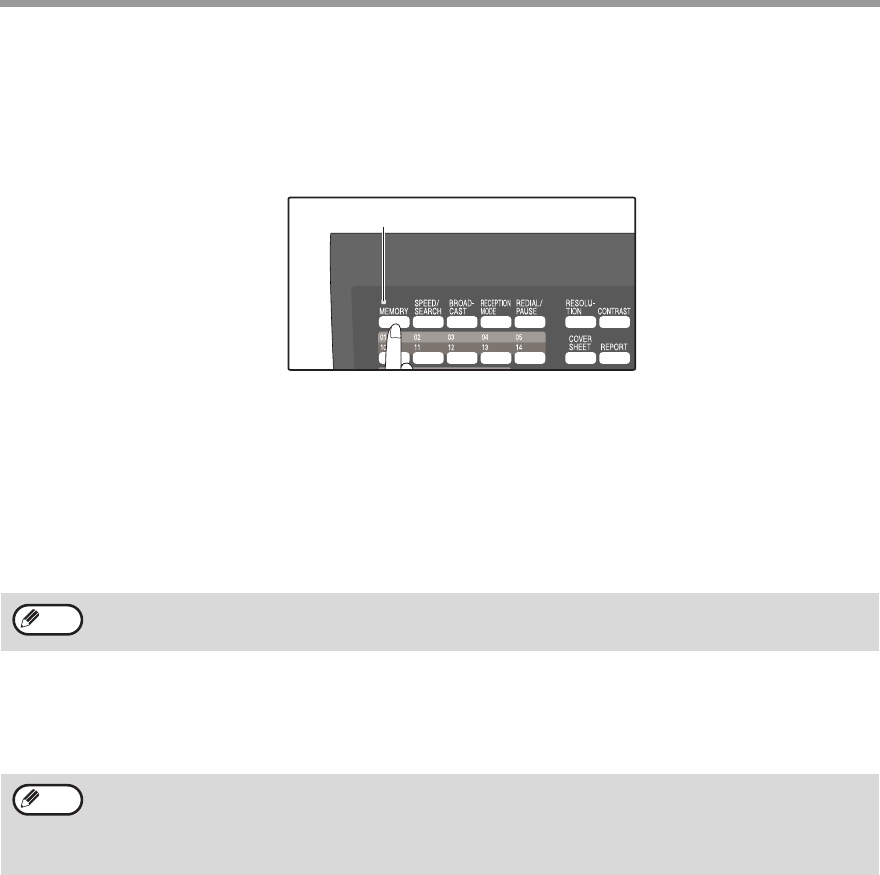 press the [MEMORY] key. The MEMORY indicator lights up when memory transmission is selected, and goes off