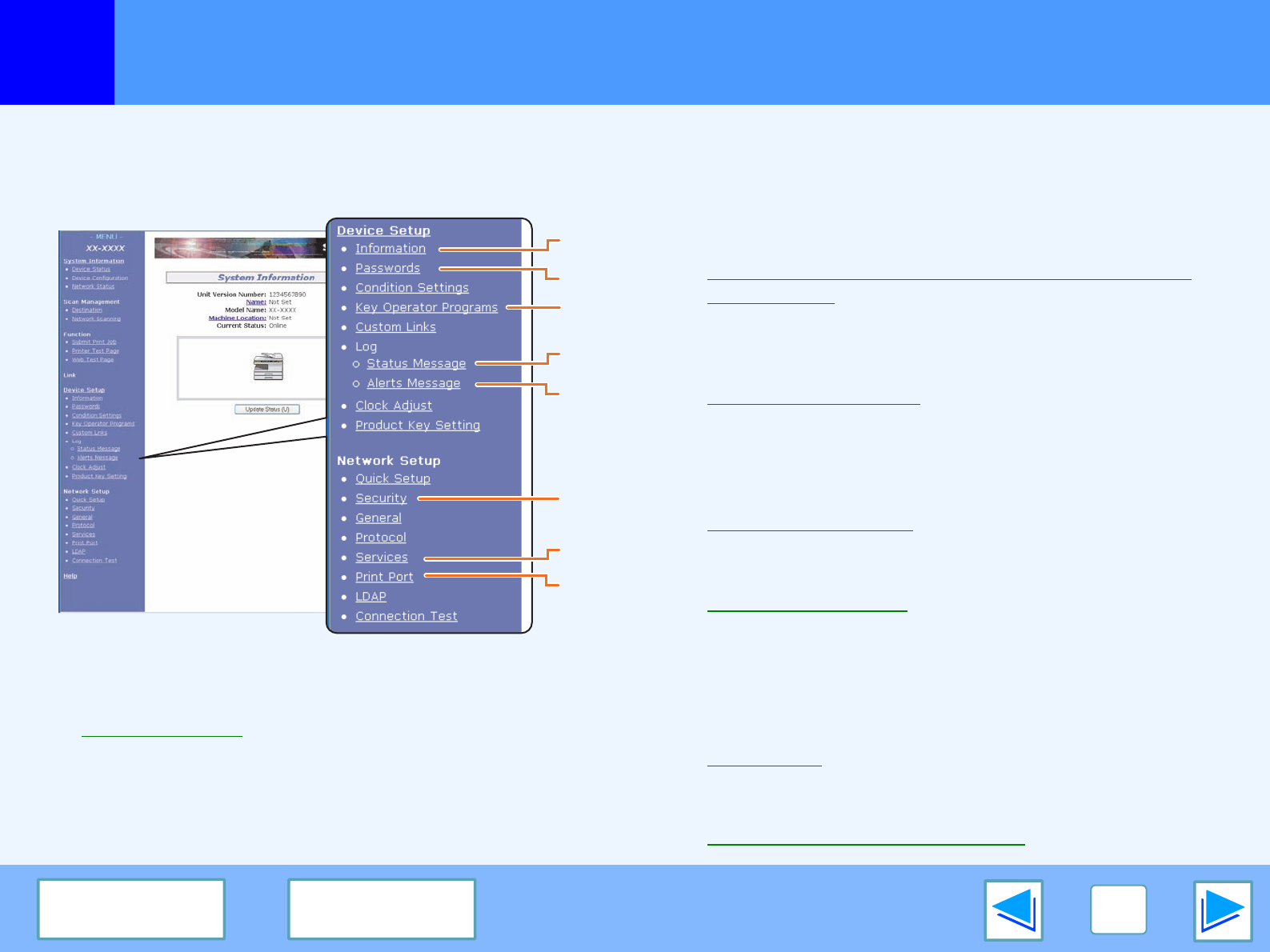 In addition to the menus that appear for users, other menus that can only be used by the administrator appear in the administrator Web pages.