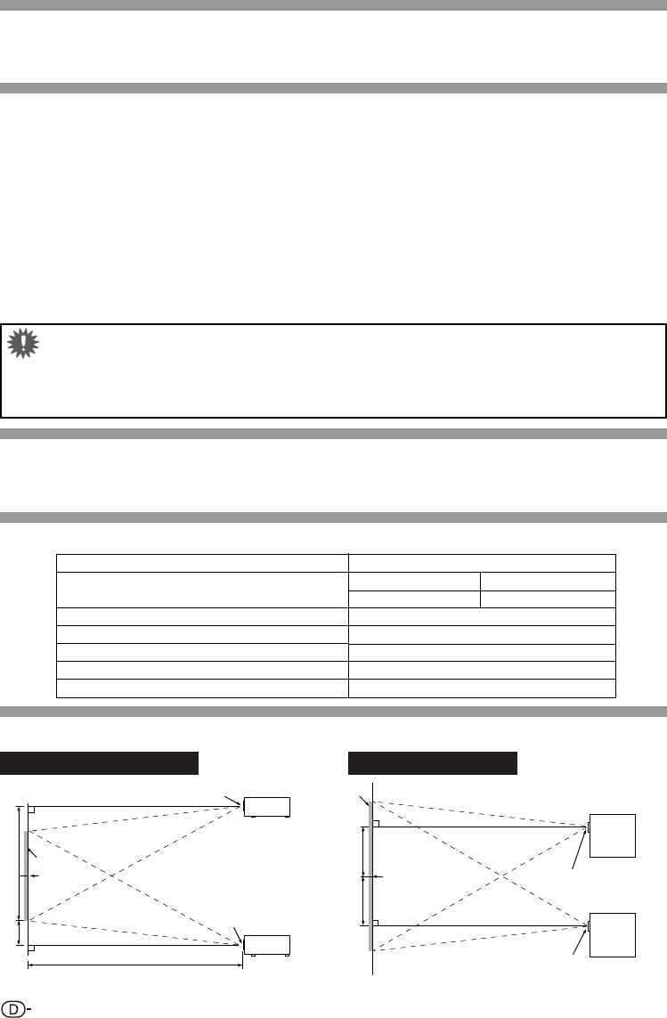 Für Informationen über die Bildgrößen- und Scharfeinstellungen siehe „Bild-Projektion“ in der