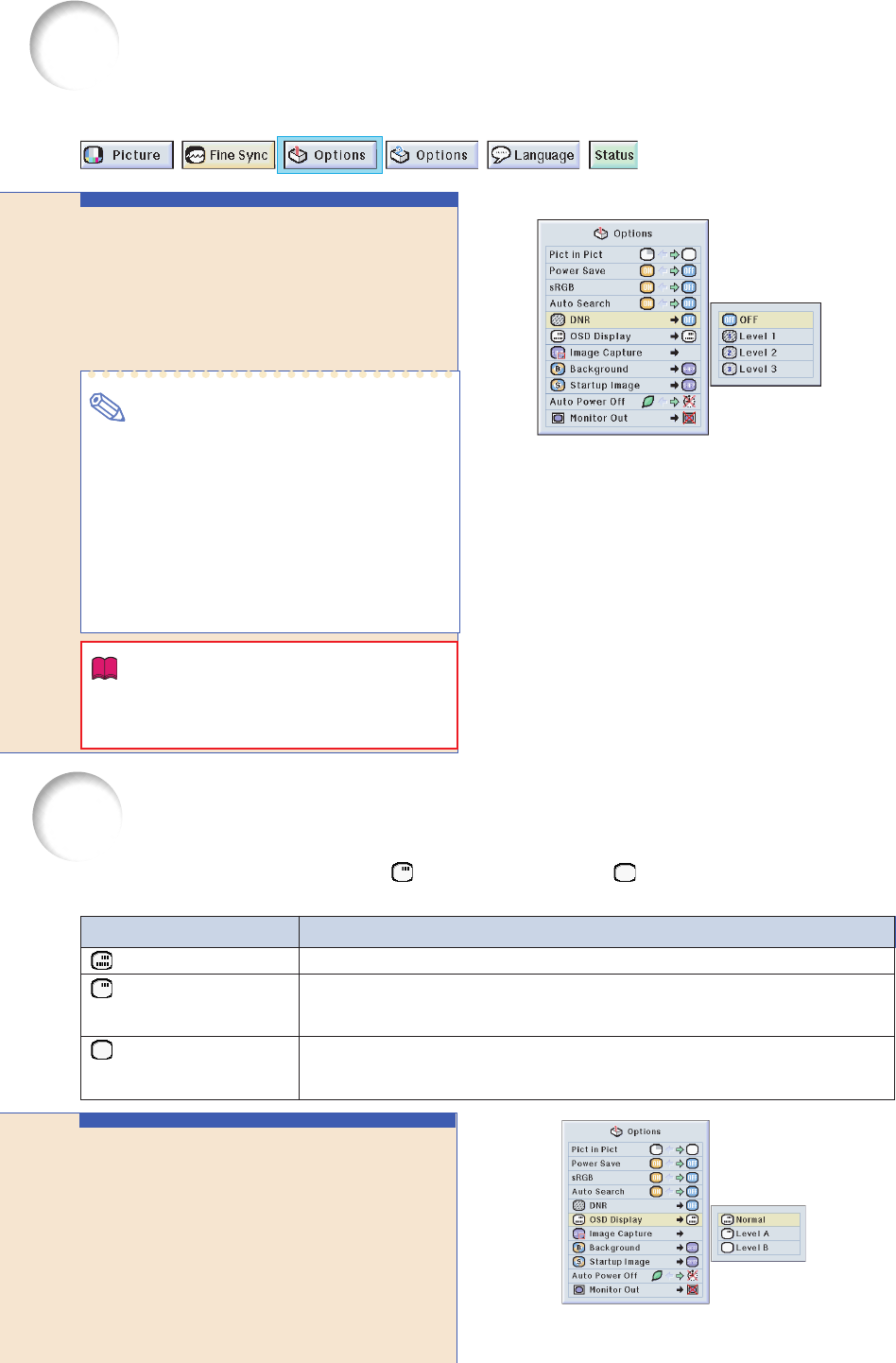 “OSD Display” (экранный дисплей) как “ Level A” (уровень А) или “ Level В” (уровень В) индикация