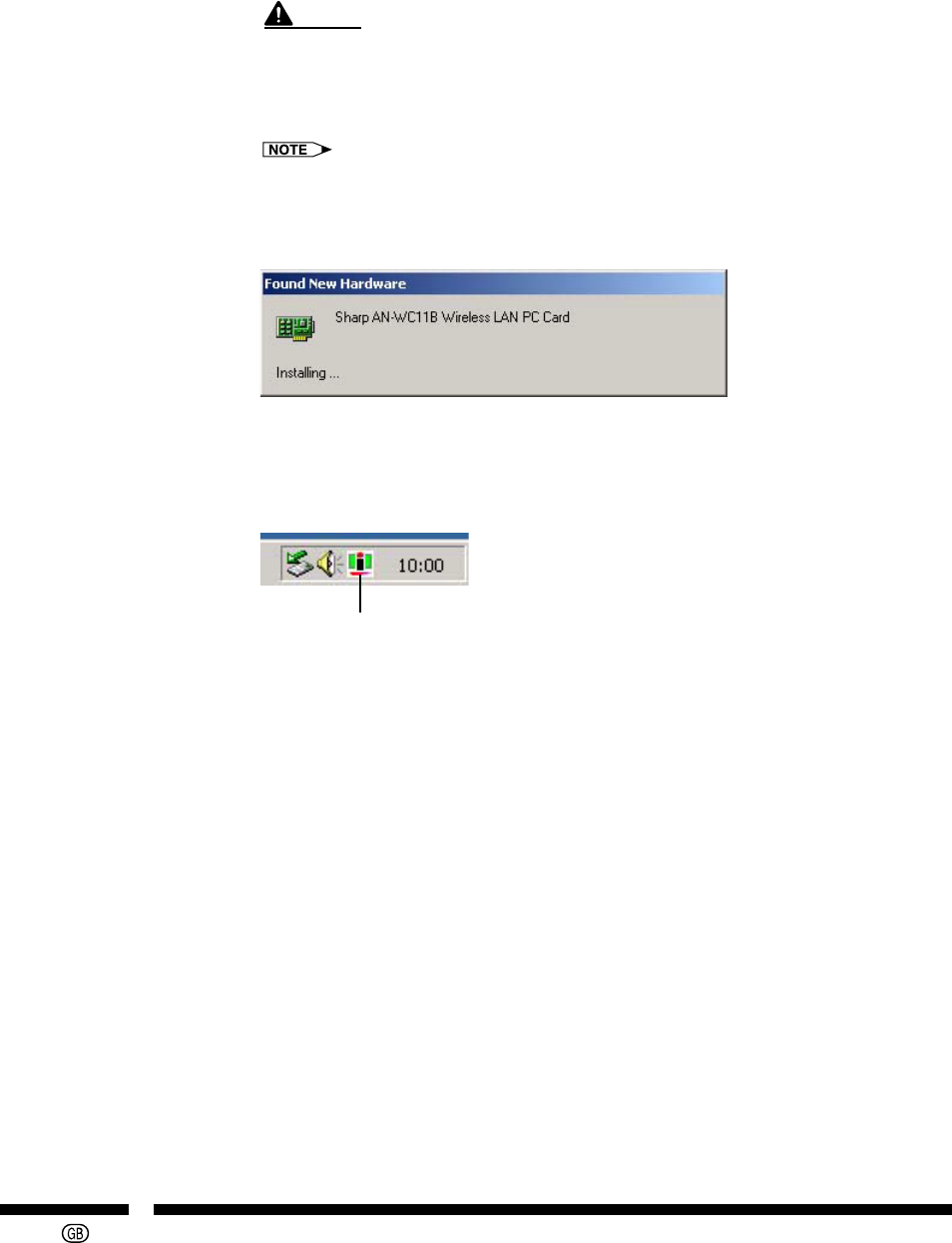 • If the “Sharp AN-WC11B Wireless LAN PC Card” is displayed, installation is