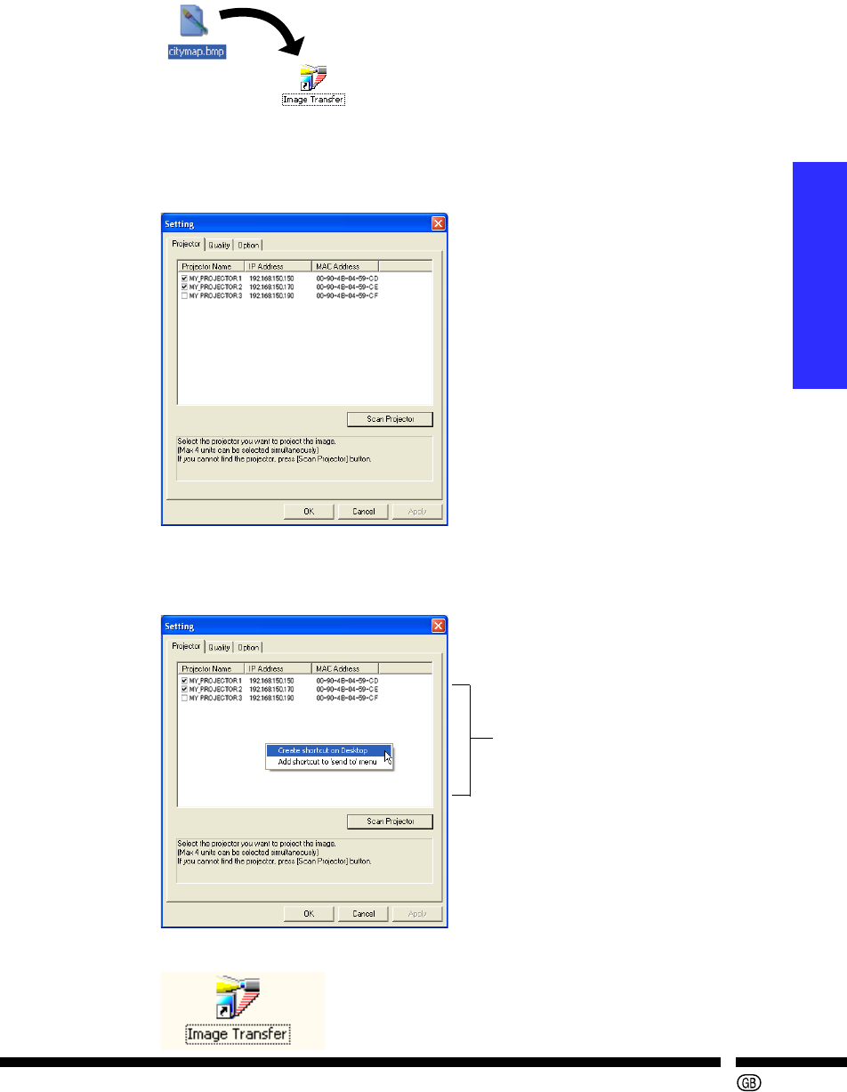 Create a shortcut for “Image Transfer” on the desktop, and then drag the file into the