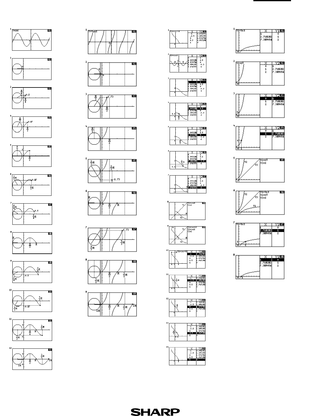 X 8) Y=lnX