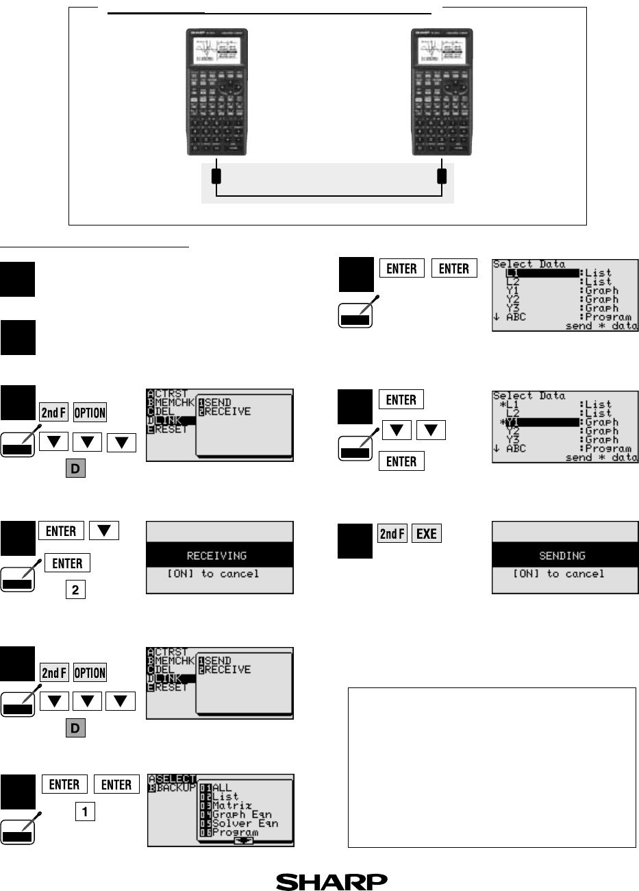 Transfer data between two EL-9650/9600c calculators using the communication cable (CE-450L).